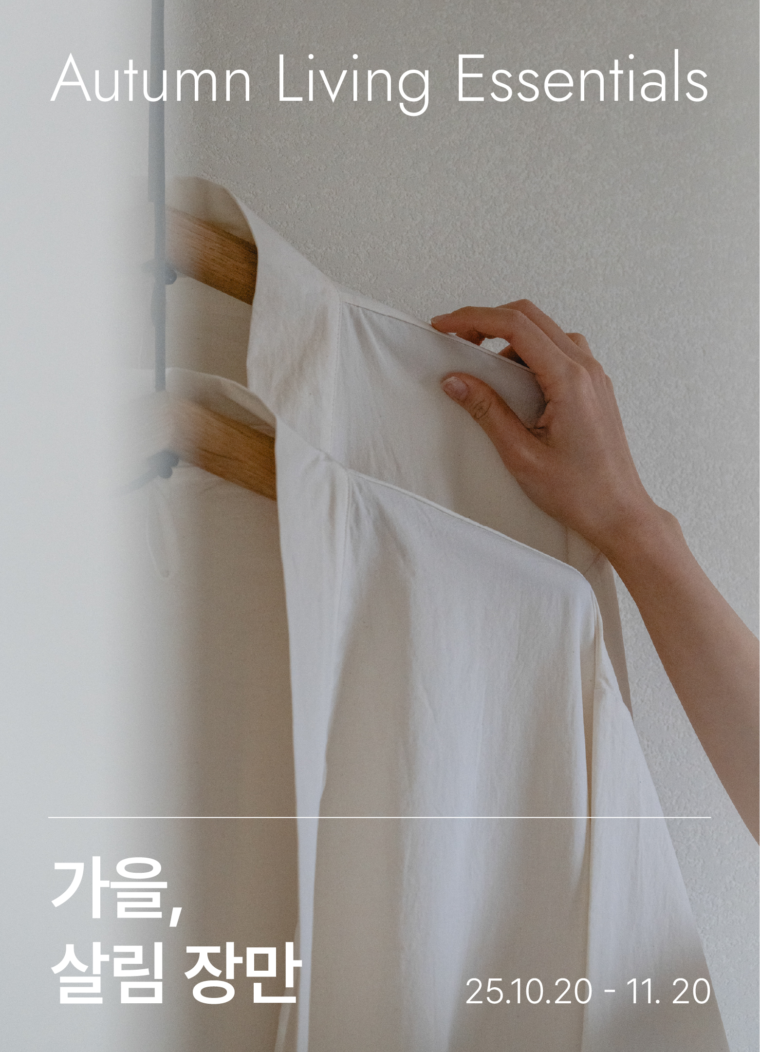 계절이 바뀌면, 생활의 결도 새로워집니다. 가을의 온도에 맞춰 일상 속 작은 물건부터 새 단장해 보세요. 이불, 베개, 수건, 보습제- 그동안 수고해 준 살림들을 정돈하고 하루를 새로 짓는 가을 살림 장만을 지금 시작해 보세요.