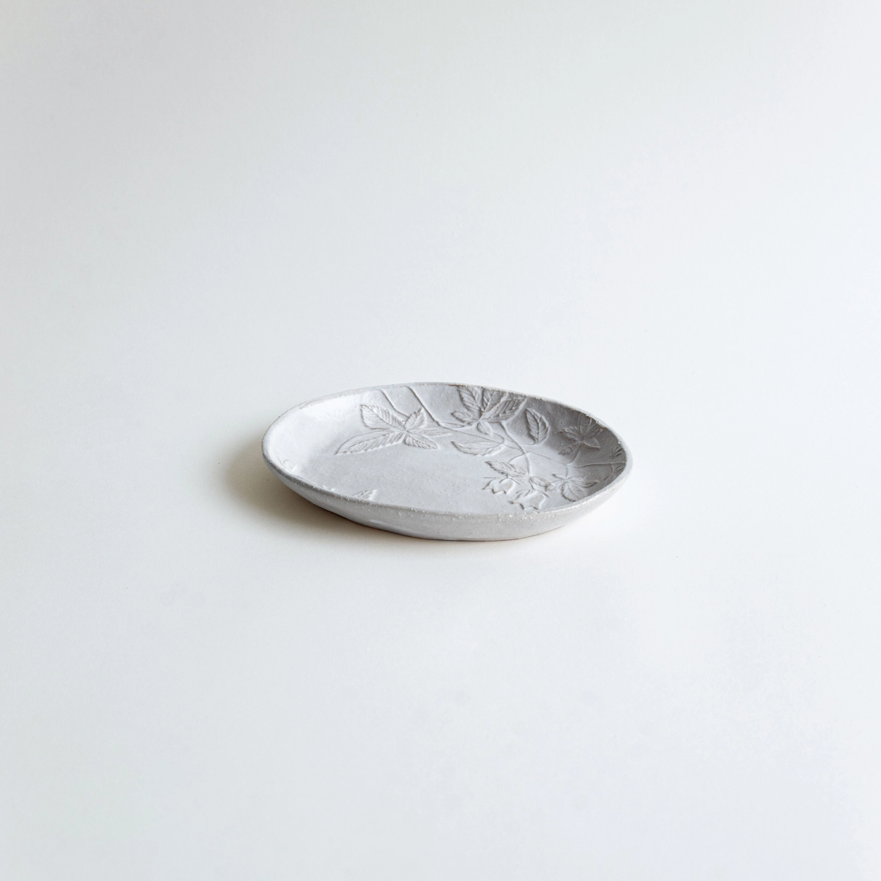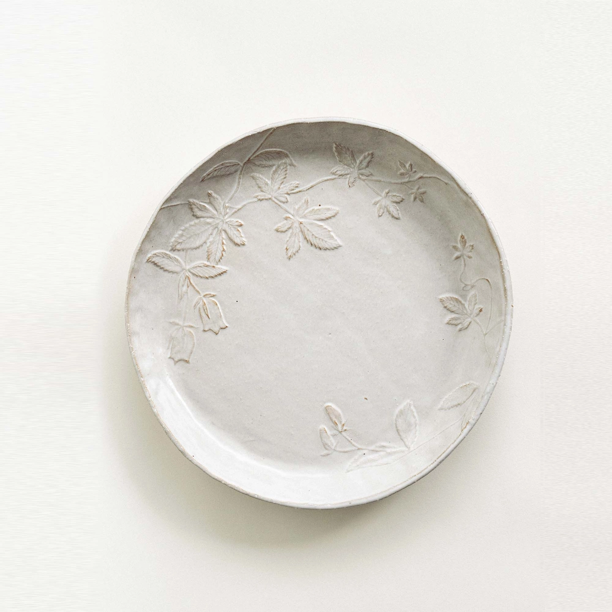 자연에서 마주하는 풀들을 꾸밈없이 표현하는 작업을 하고 있습니다. 자유롭게 피어난 모습 그대로를 흙에 옮겨내고, 질감 또한 그것을 닮게 하고자 합니다. 작가가 직접 조각해 부조로 표현한 풀들을 감상해보세요. 더 자연스러운 분위기를 살리기 위해 질감이 살아있는 흙으로 작업하고 있으니 도자기 표면과 풀의 조각이 어우러지는 질감을 느껴보시는 것도 좋을 것 같습니다.
