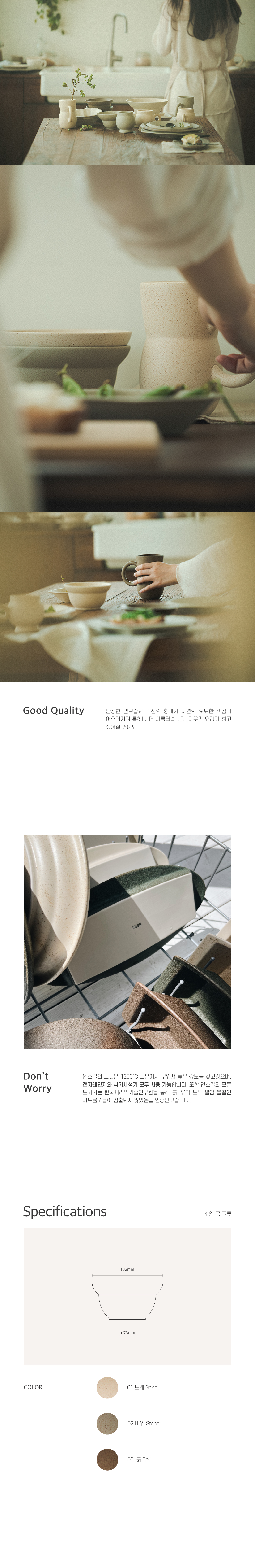 국그릇, 스프볼, 시리얼볼, 과일볼 용도로 다양한 음식을 담을 수 있는 사이즈입니다. 윈디샌드, 레이니포레스트,딥플리머그색상의 경우 전 부분이 흙의 질감이 보일 수 있도록 무유(유약이 없는)로 라인포인트를 주었습니다.