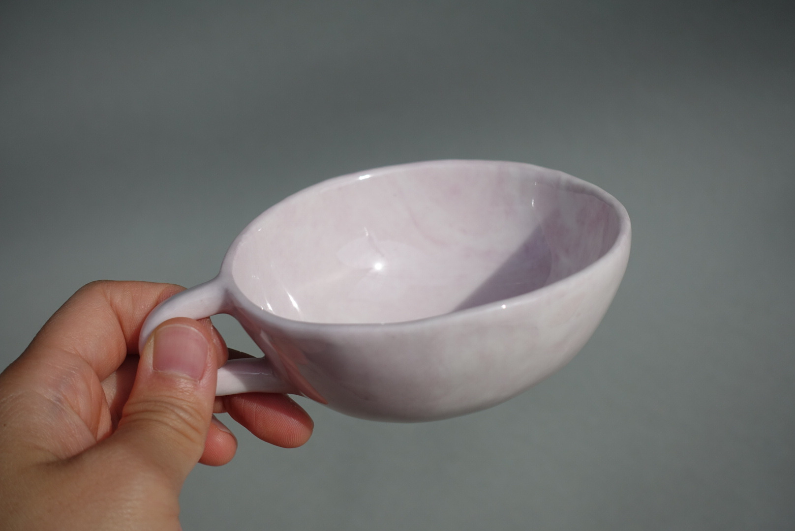 솜사탕 같은 색감의 마블링이 기물마다 모두 다르게 표현된 것이 특징이며, 간단한 간식 (아이스크림, 요거트, 커피) 담아마시기 좋은 사이즈입니다.