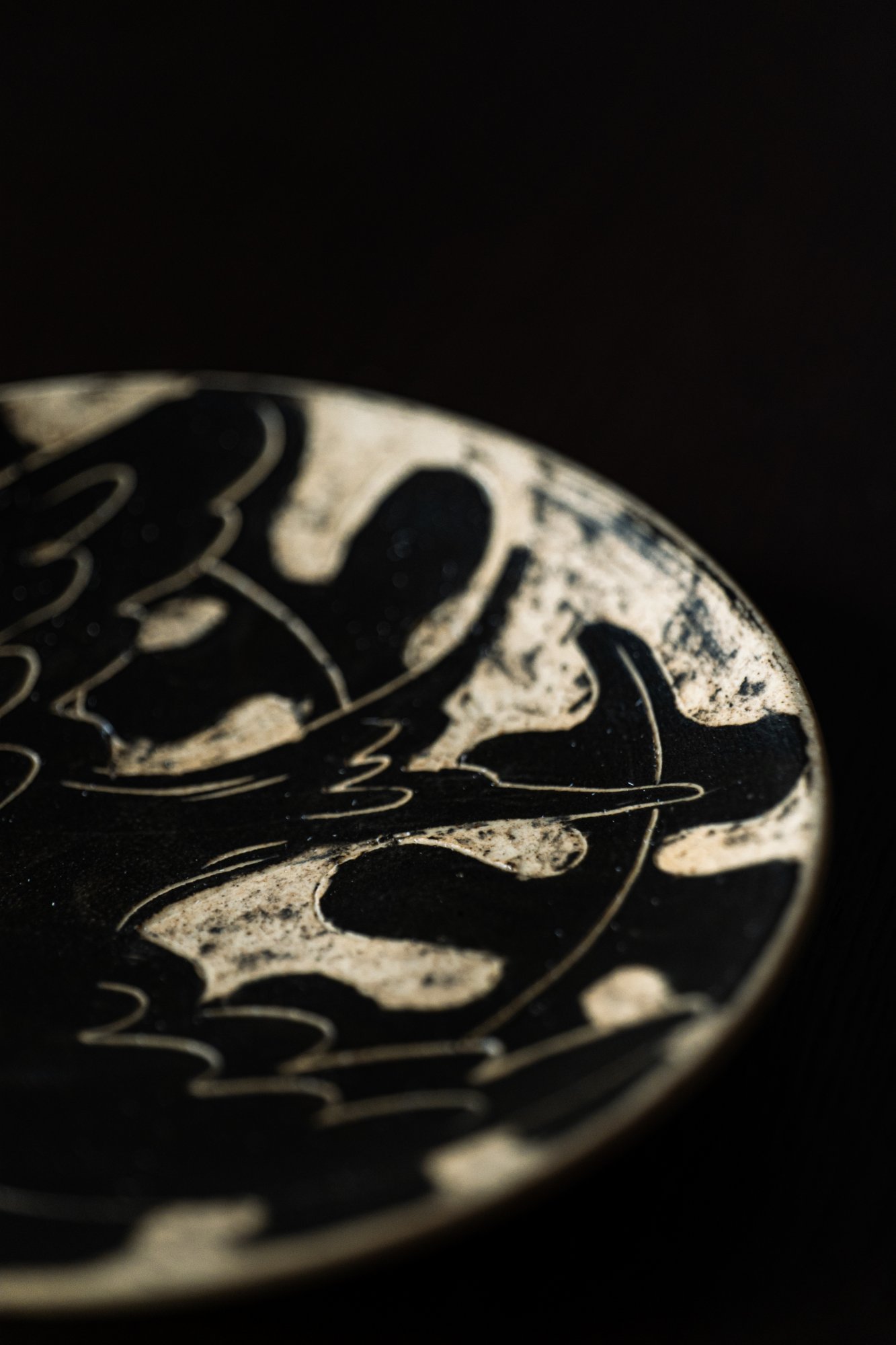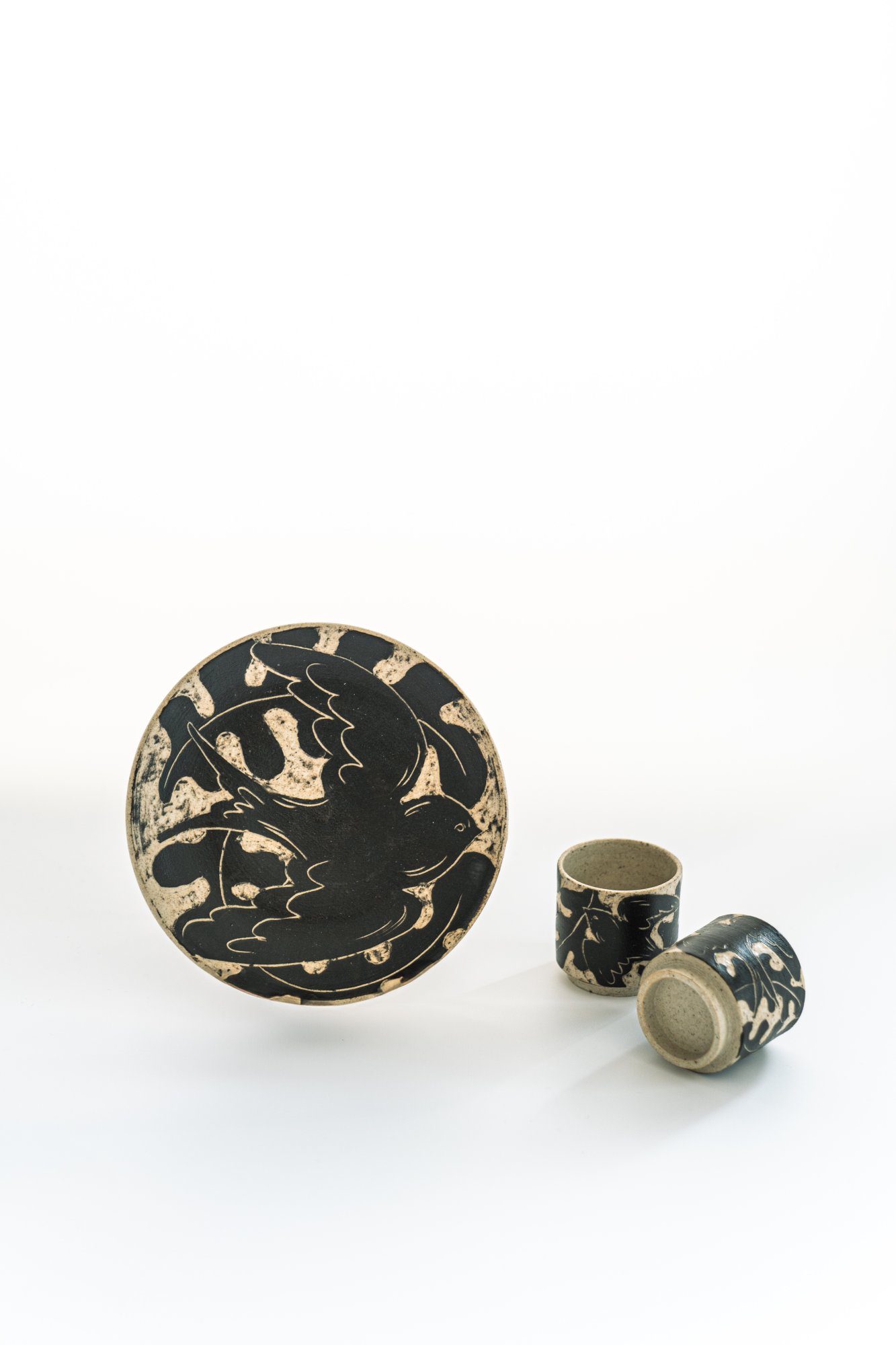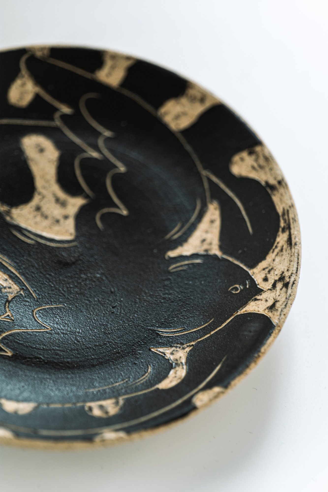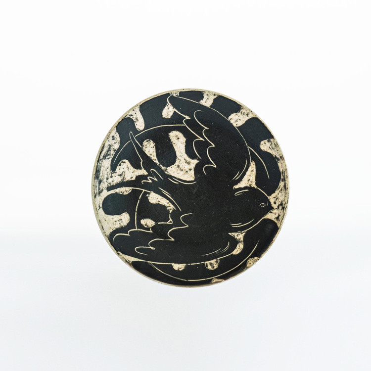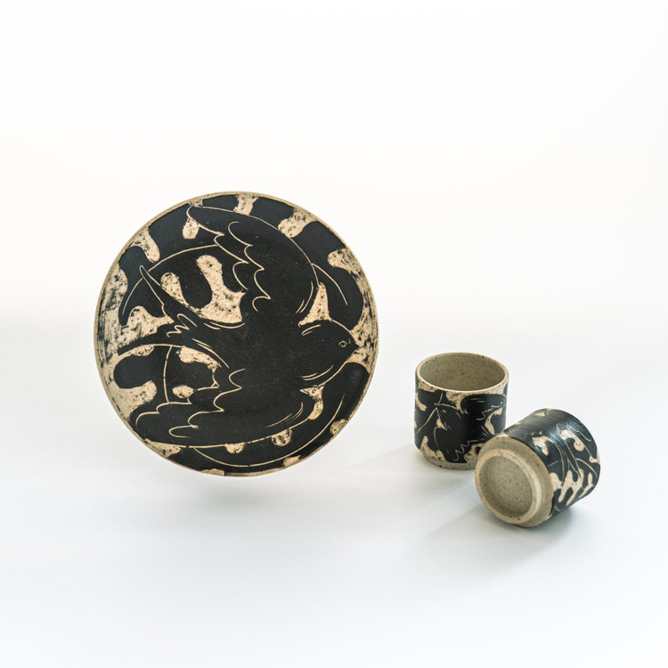 박지(剝地) 기법이란, 도자 형태를 성형한 후, 표면에 흙이 마르기 전 화장토를 고르게 바르고 칼이나 도구로 문양을 따라 긁어내는 기법입니다. 화장토가 제거된 부분에서 바탕의 색이 드러나 문양이 부각되는데, 작가는 제비와 제주 풍경이 지닌 멋을 표현했습니다.