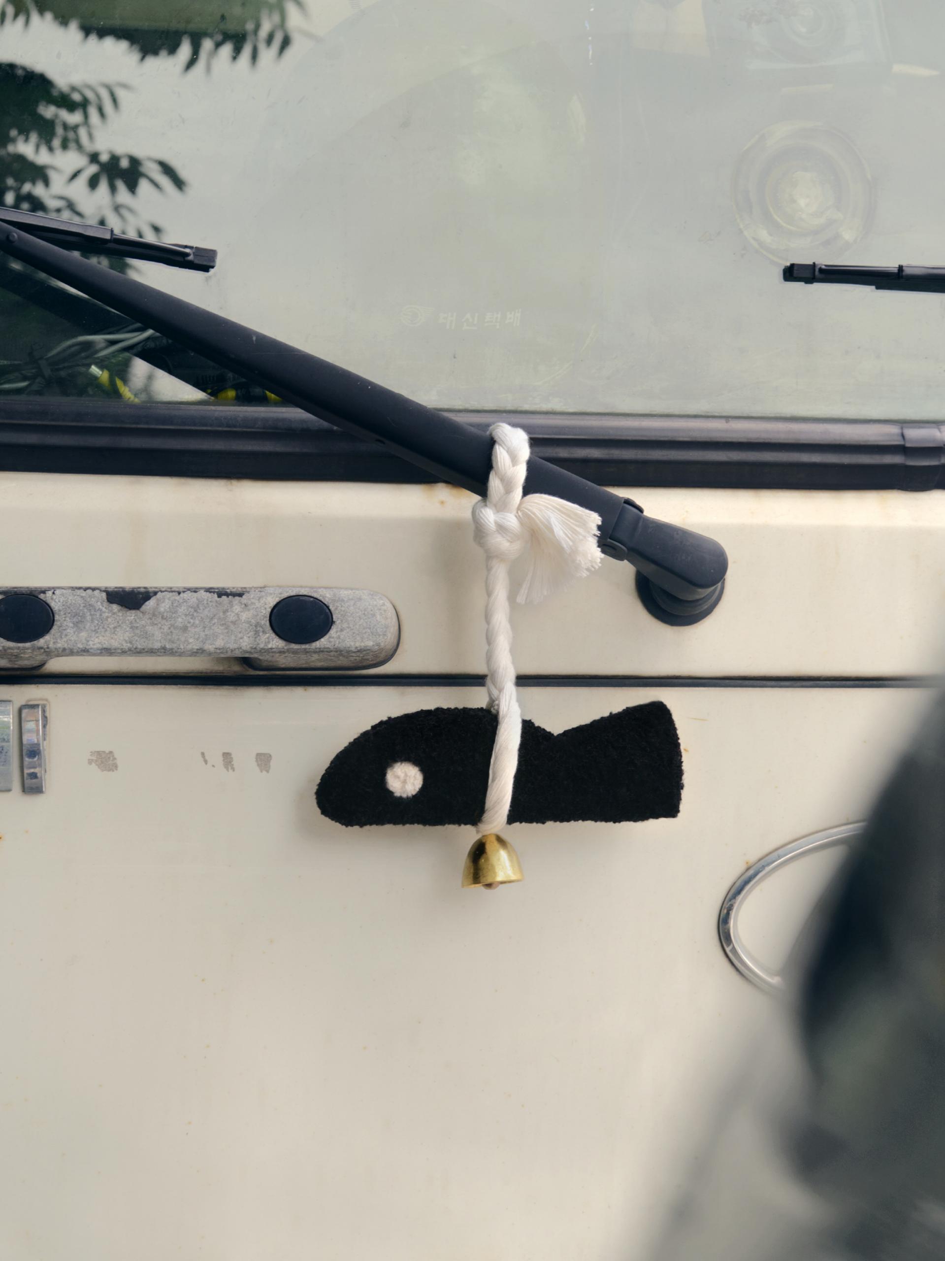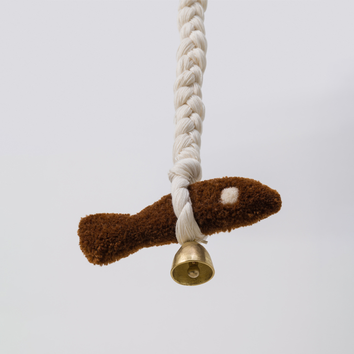 명주실 실타래는 긴 실과 같이 오래 살기(장수·長壽)와 일이 술술 풀리기를 의미하고, 말린 명태인 북어는 액을 막아주는 의미로 제사나 고사에서 제물로 사용됩니다. 주물로 제작된 종은 행운을 가져다 주는 맑고 청아한 소리를 냅니다.