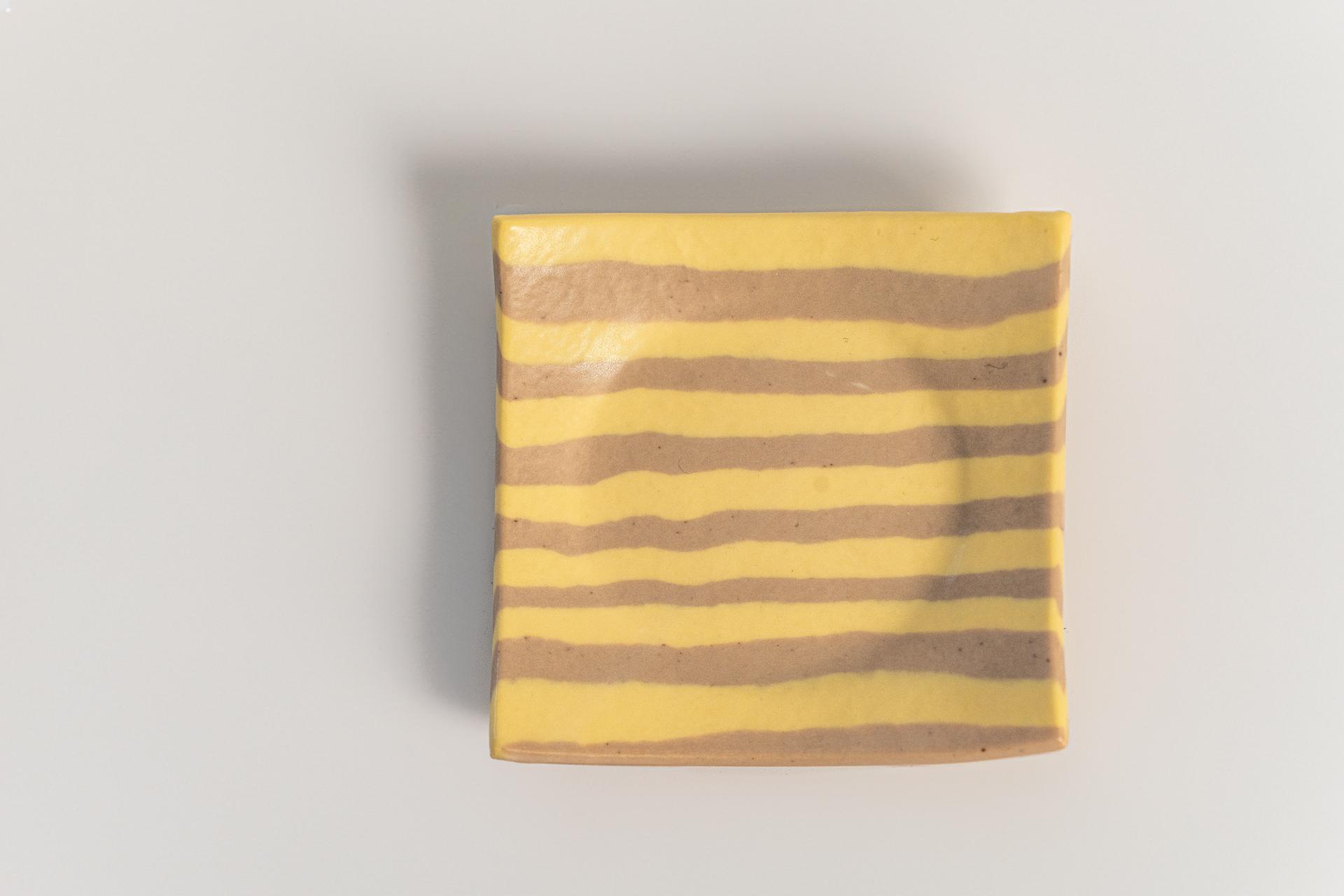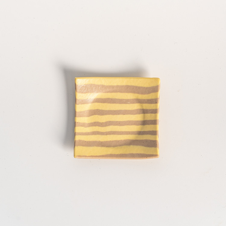 줄무늬 패턴이 담긴 작고 귀여운 네모 접시입니다. 인센스용 홀더나, 작은 장신구들을 올려두는 용도로 사용하실 수 있어요.