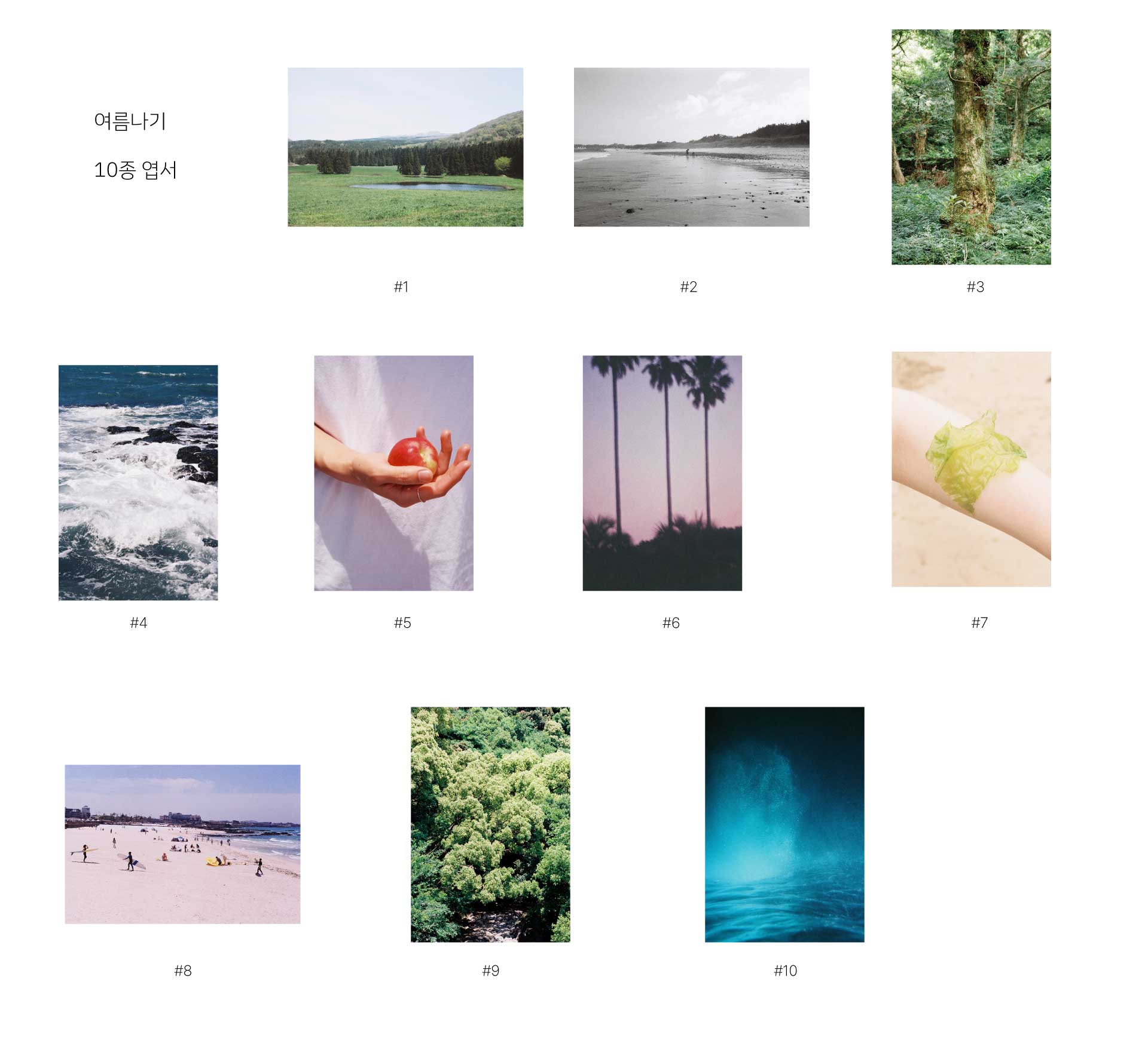 제주의 청량한 여름을 가득 담은 '여름나기' 영상도 더했습니다. 기억의 여백이 되어줄 엽서 10종 세트입니다.