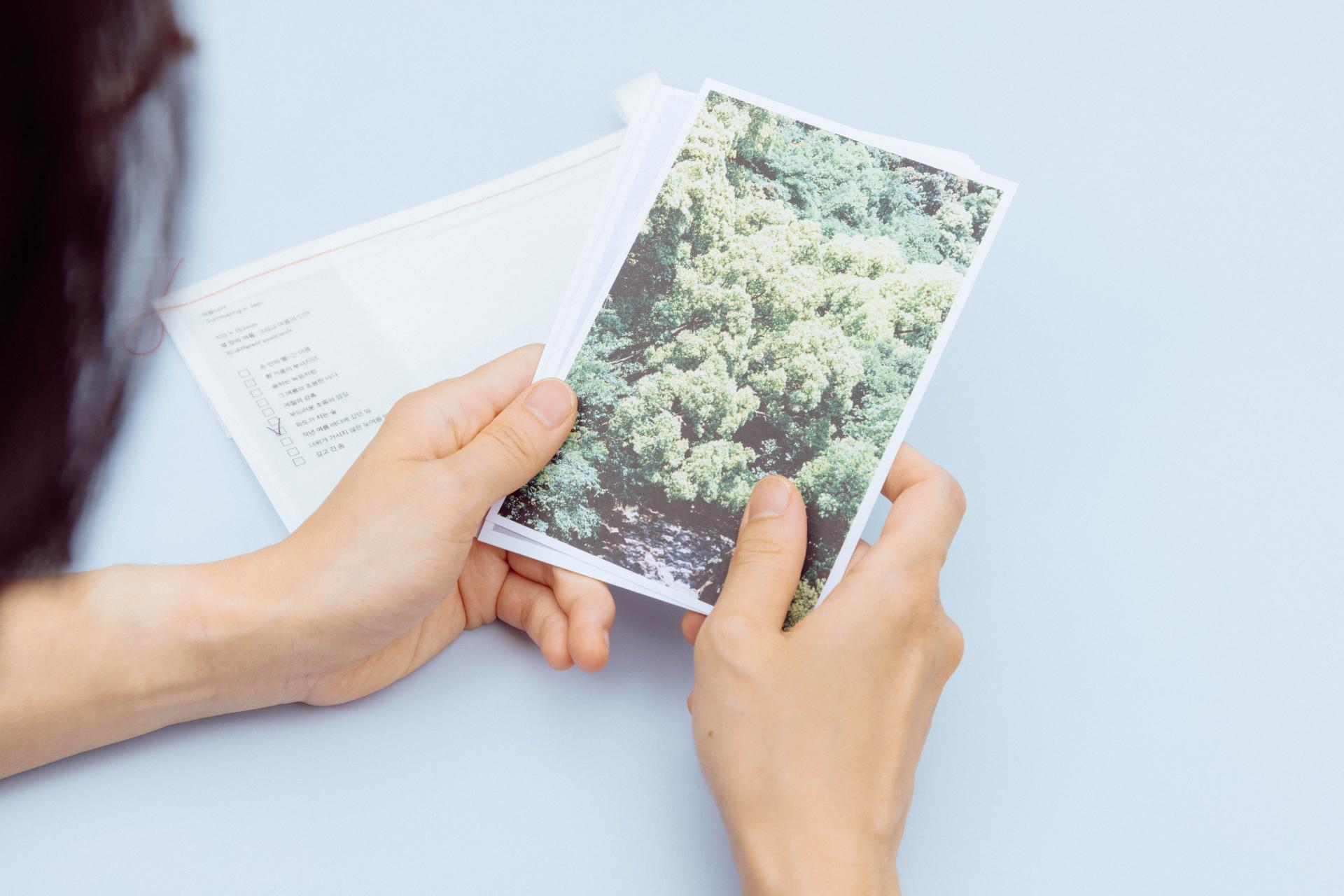각 엽서에는 사진과 함께, 여름을 담은 하나의 문장이 함께합니다.