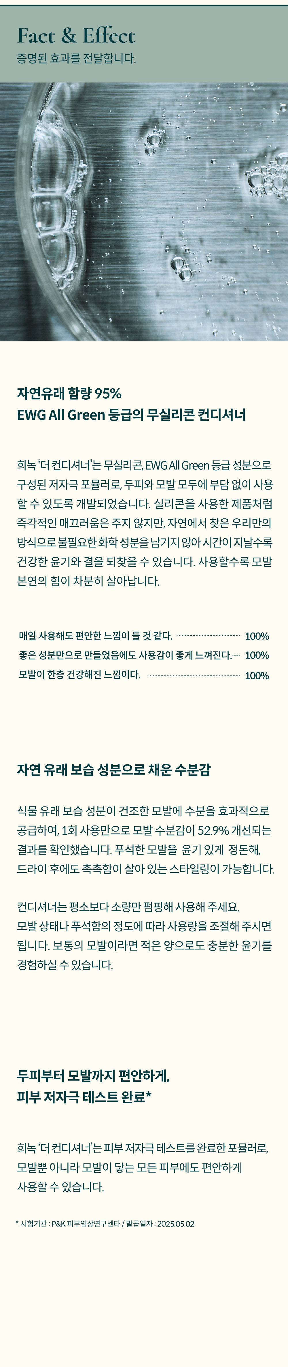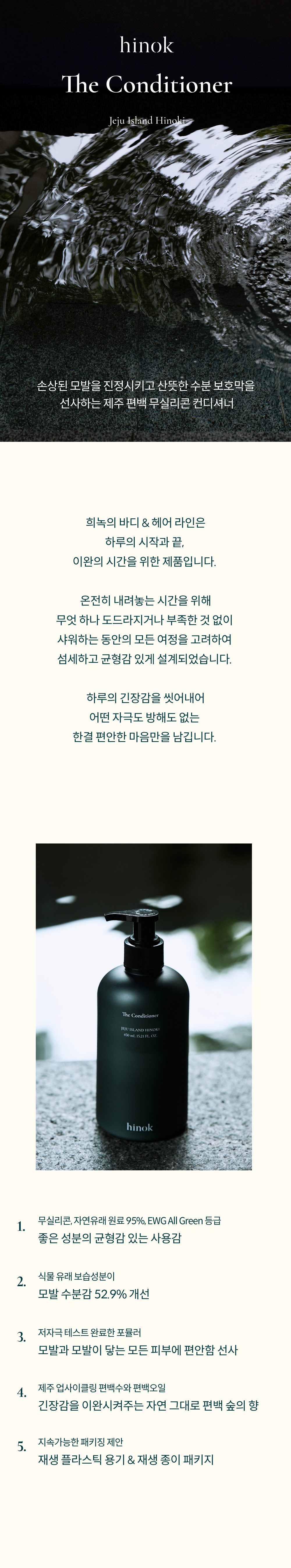 손상된 모발을 진정시키고 산뜻한 수분 보호막을 선사하는 자연유래 제주 편백 무실리콘 컨디셔너입니다.