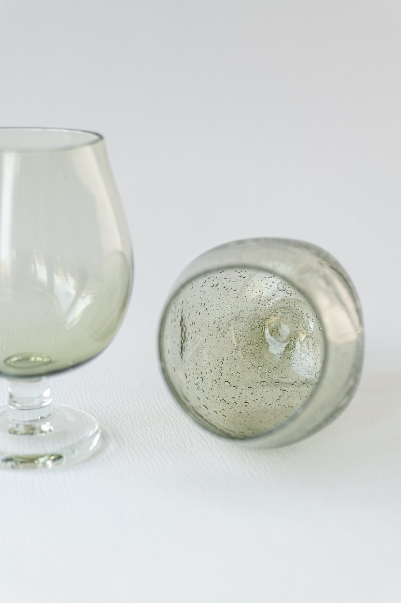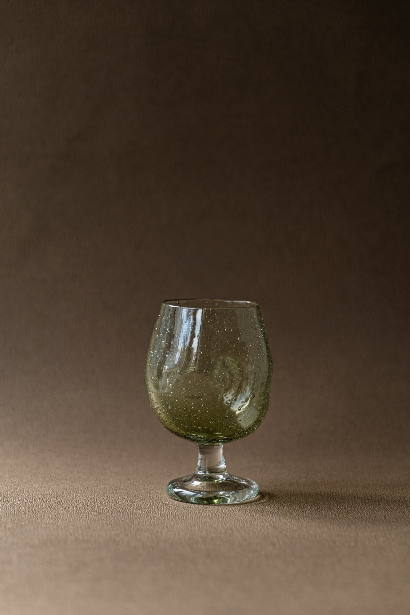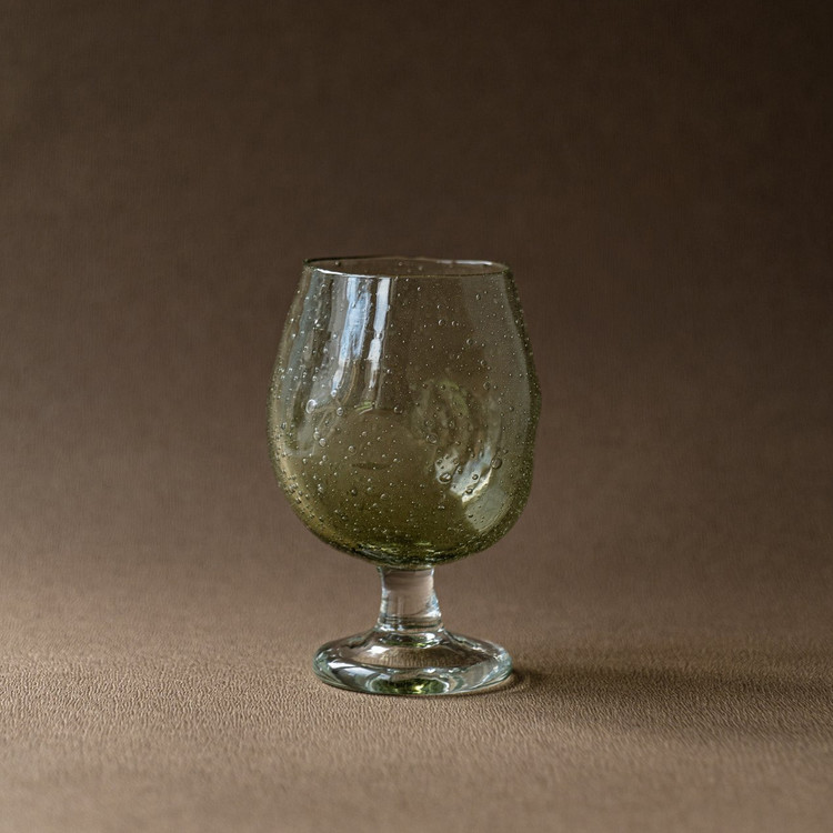 그린 브라운의 고급스러운 컬러와 비정형 디자인의 해당 컵은 유리 블로잉 기법으로 제작되었습니다.