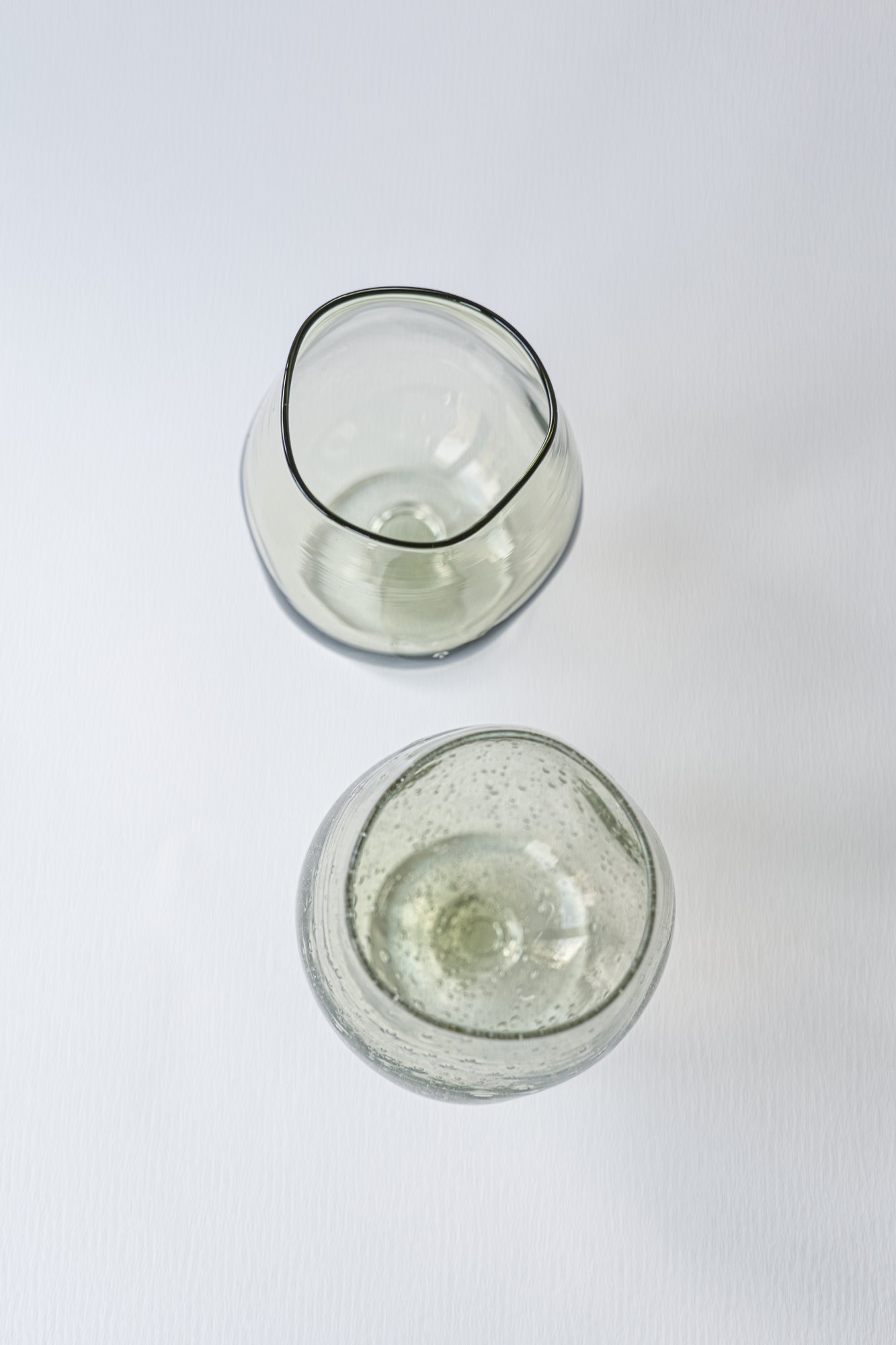⊙ 핸드 블로잉 기법은 섭씨 1200도의 초고온에서 용해된 유리를 파이프에 말아 입으로 불어내는 기법입니다. 하나하나 작가님의 손에서 탄생하기에 모양이나 크기, 높이의 차이가 있을 수 있으며 미세한 기포가 있을 수 있습니다.