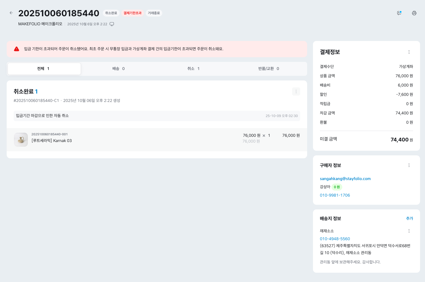 가상계좌 기한 내 주문상태 미변경으로 인한 자동취소 건 ( 고객 입금 확인 완료 )