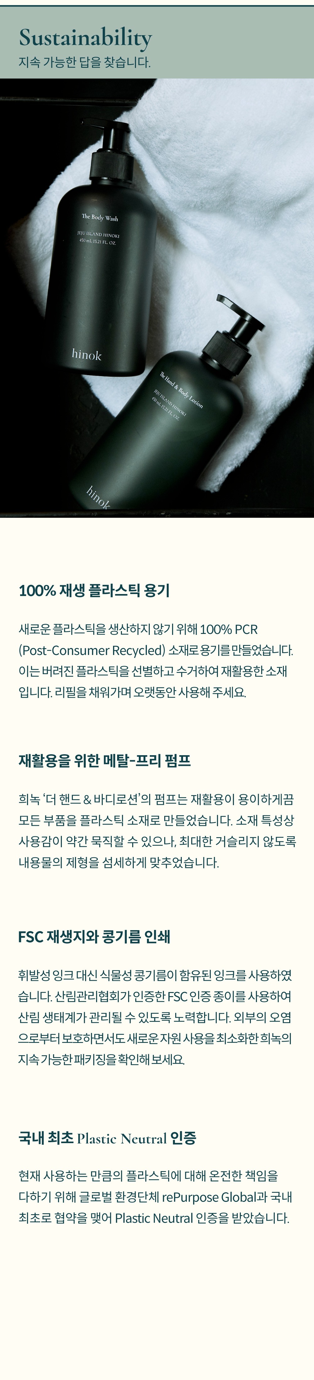이완의 시간을 위해 균형감 있는 세정력과 편안함만 남기는 제주 편백 저자극 바디워시입니다.