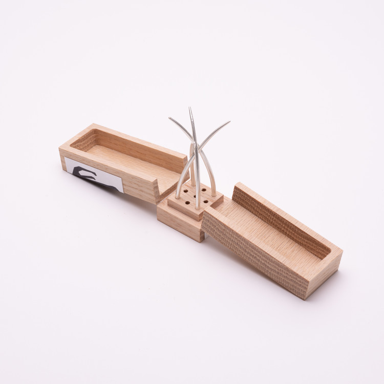 고양이수염에서 착안한 WISKER는 순은으로 제작한 실버 픽과 나무 상자입니다. 과일이나 치즈, 디저트 등 크기가 작은 한 입 거리 음식을 먹기 용이하도록 만들었습니다.
