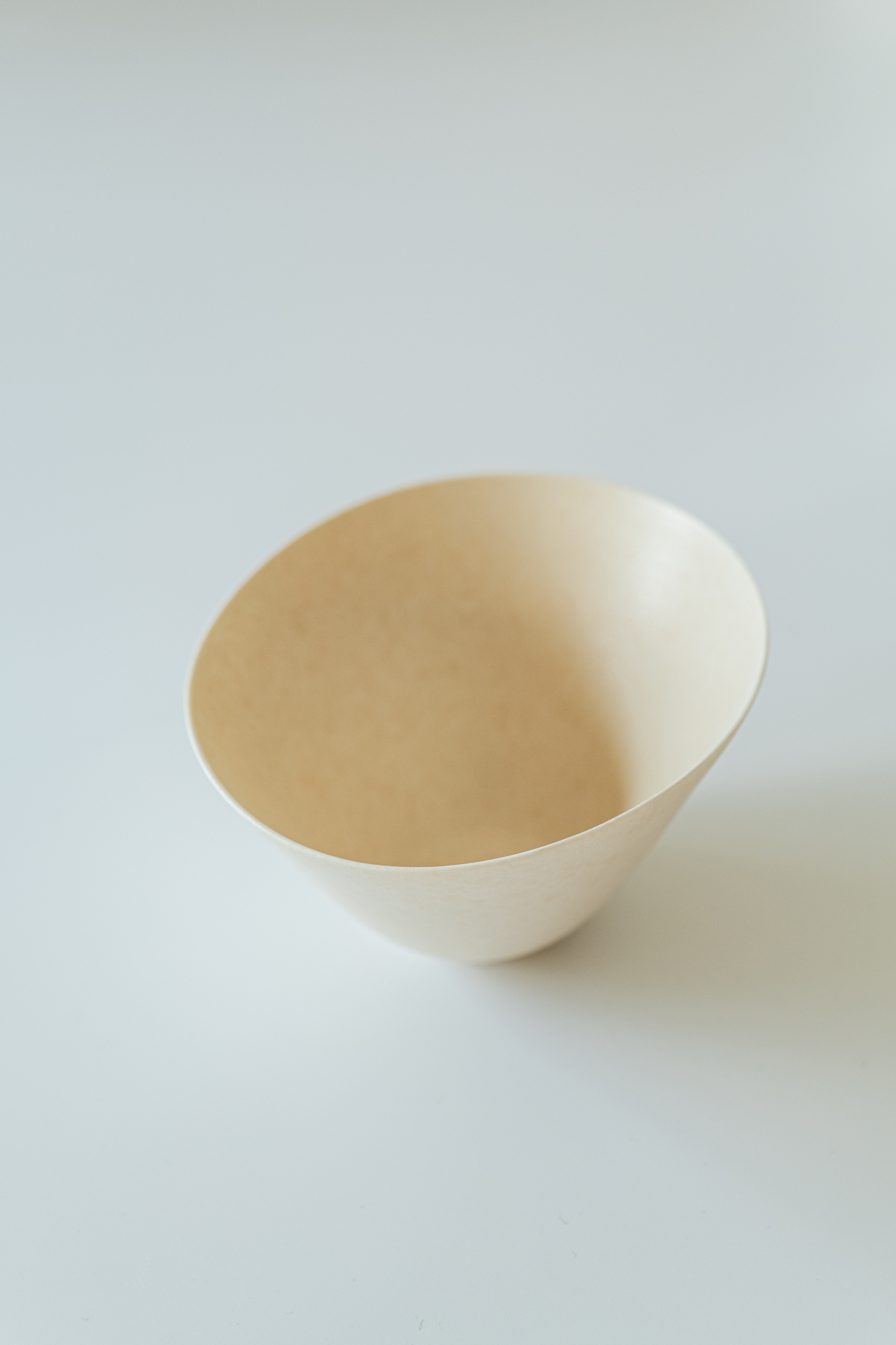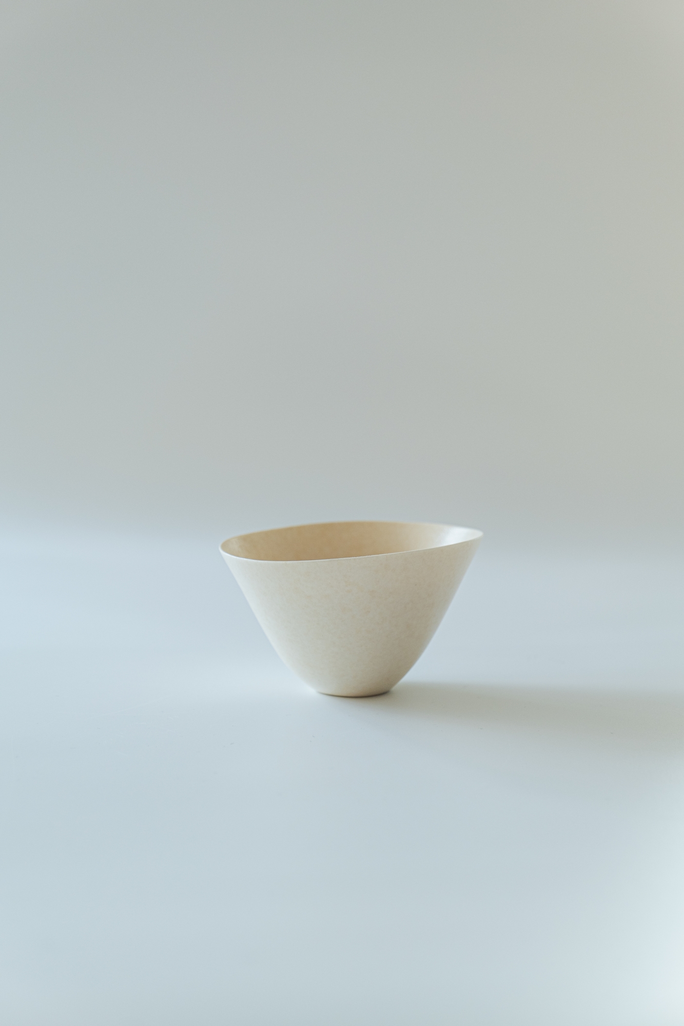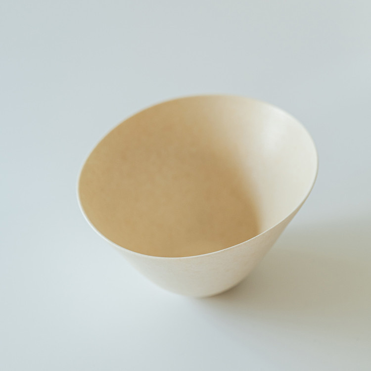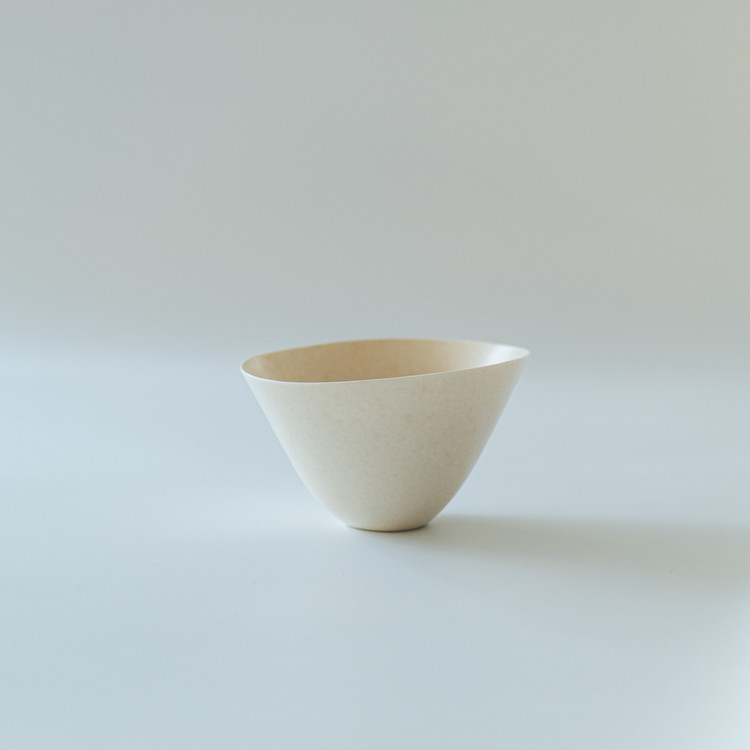 백자 혹은 실크백자를 사용해 물레로 기본 형태를 잡은 뒤, 손으로 다시 형태를 변형하고 굽을 다듬어 그릇 특유의 유연한 실루엣을 표현한 작업입니다.
