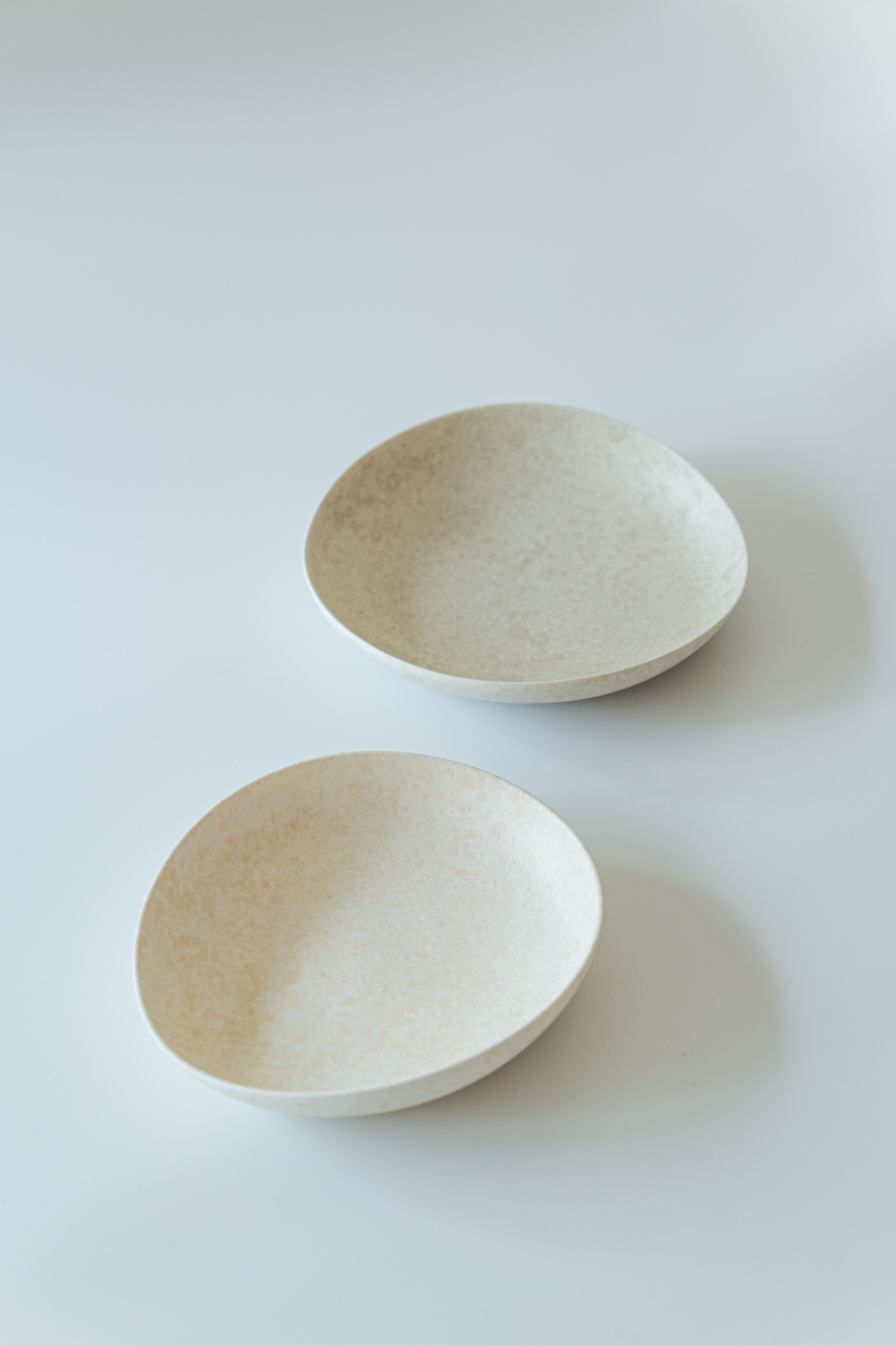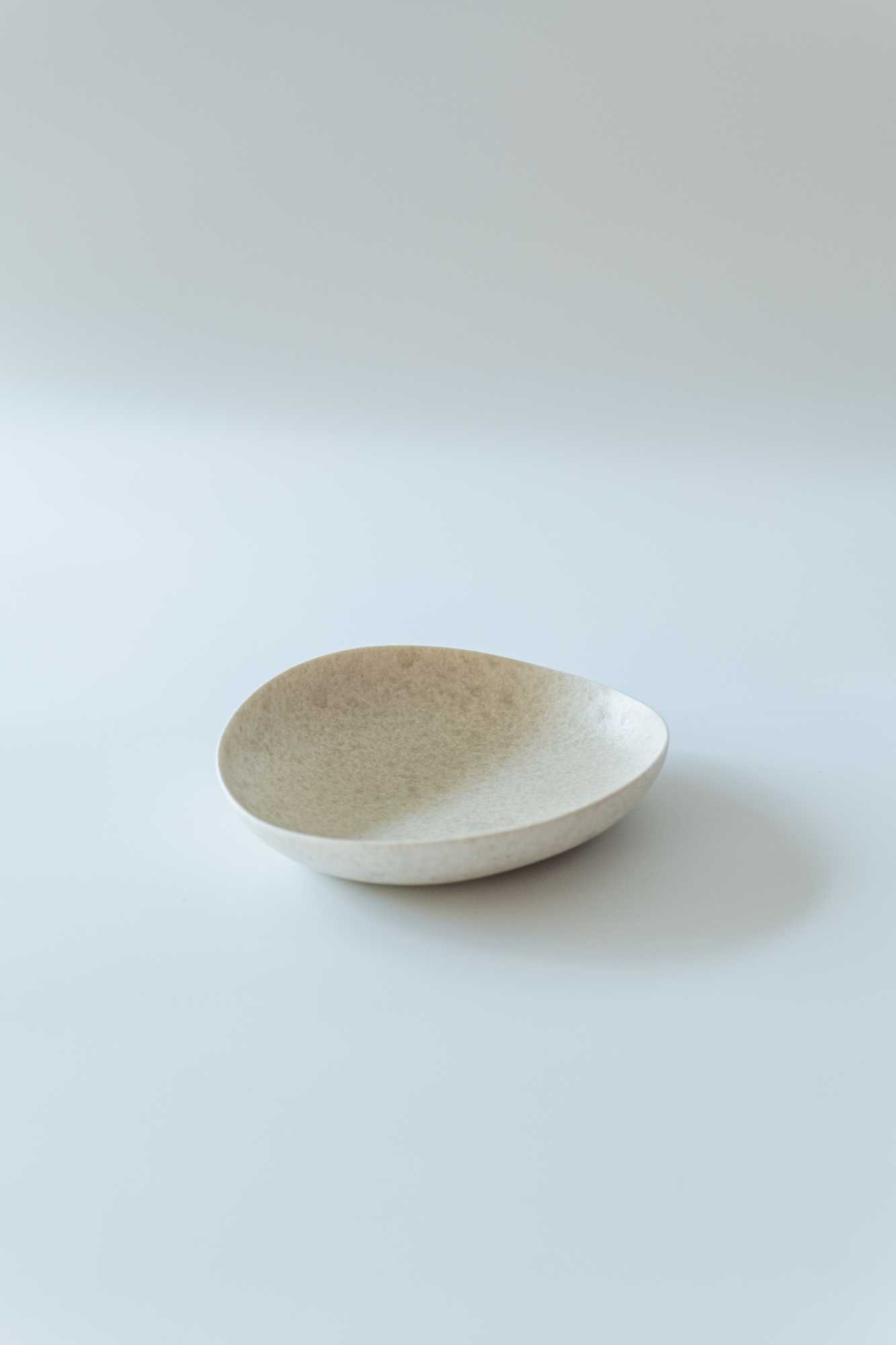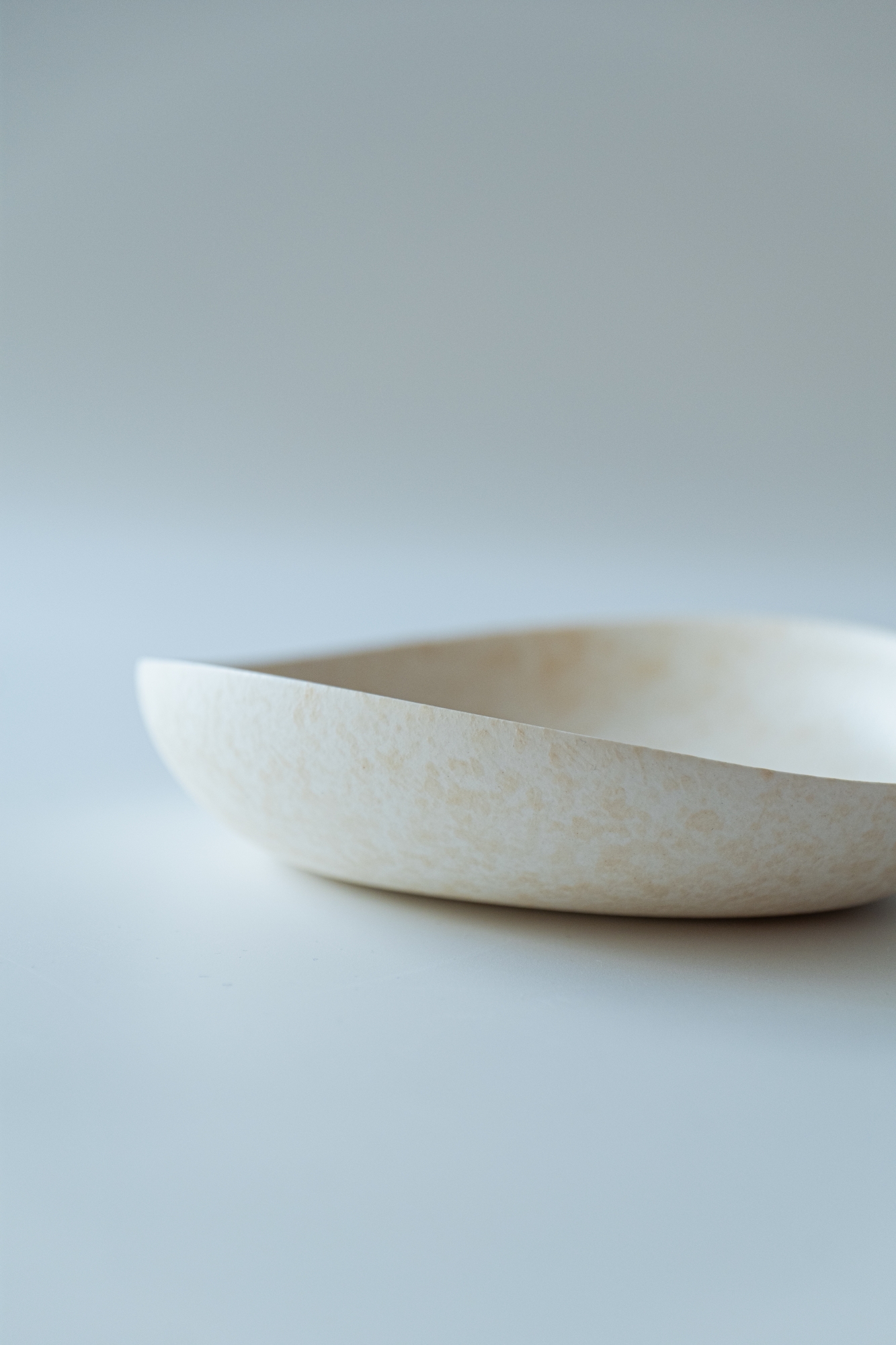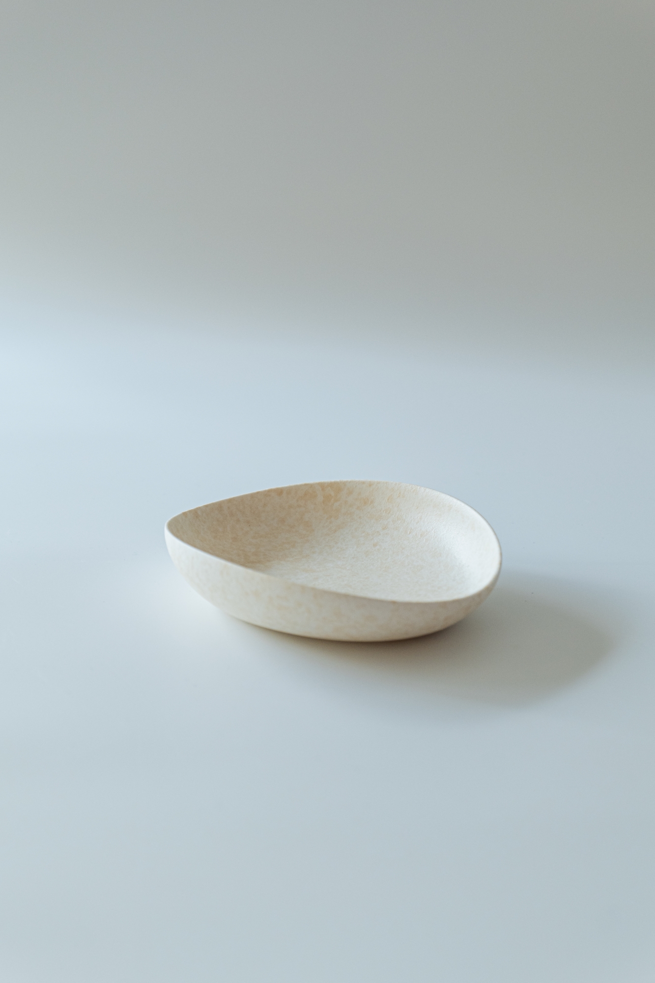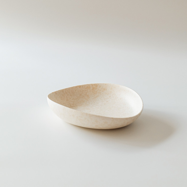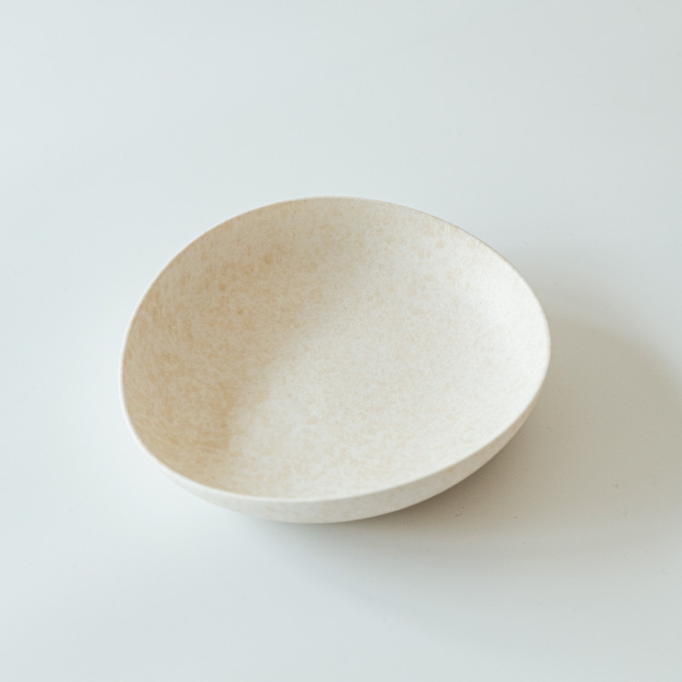 백자 혹은 실크백자를 사용해 물레로 기본 형태를 잡은 뒤, 손으로 다시 형태를 변형하고 굽을 다듬어 그릇 특유의 유연한 실루엣을 표현한 작업입니다.