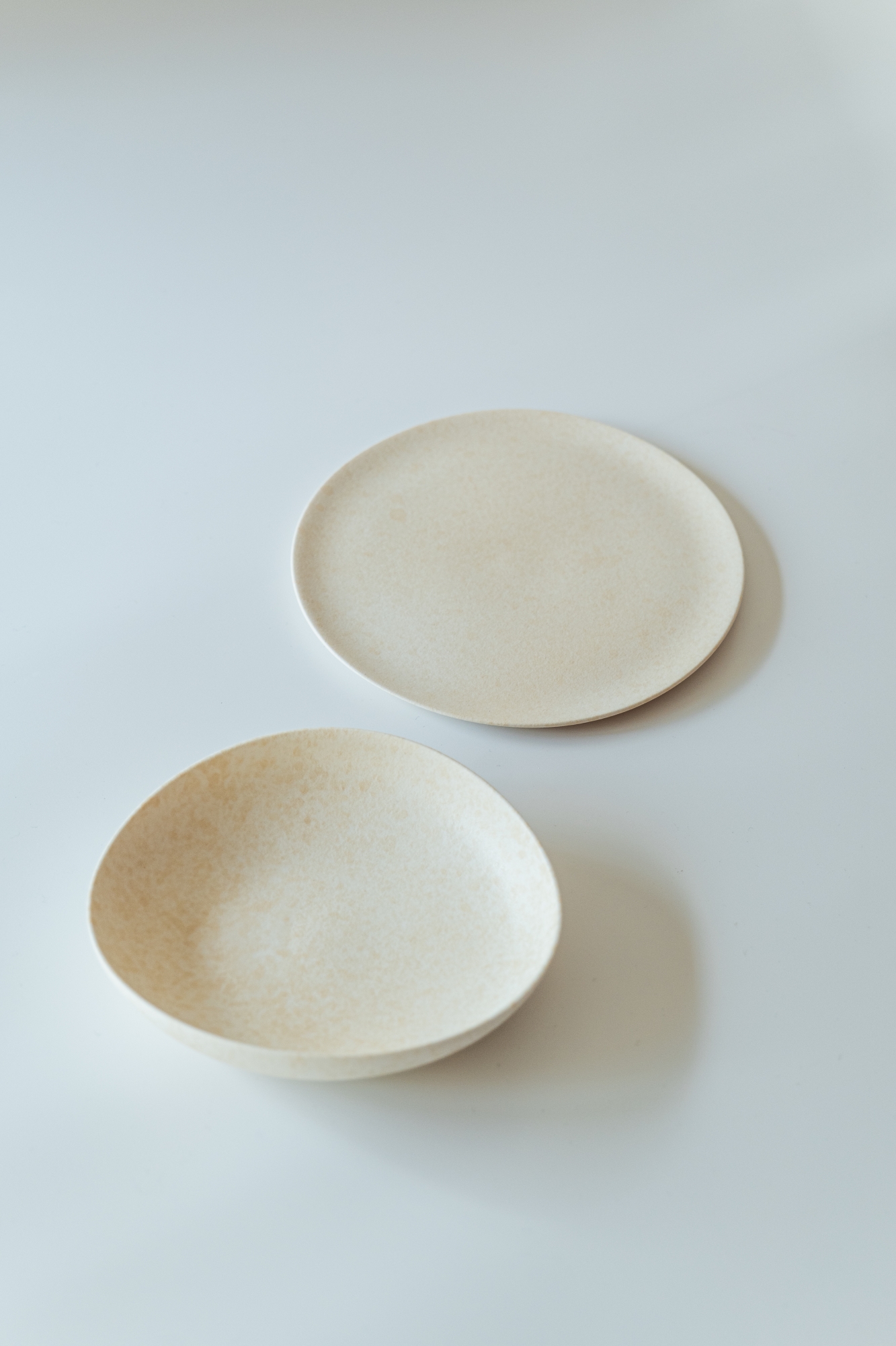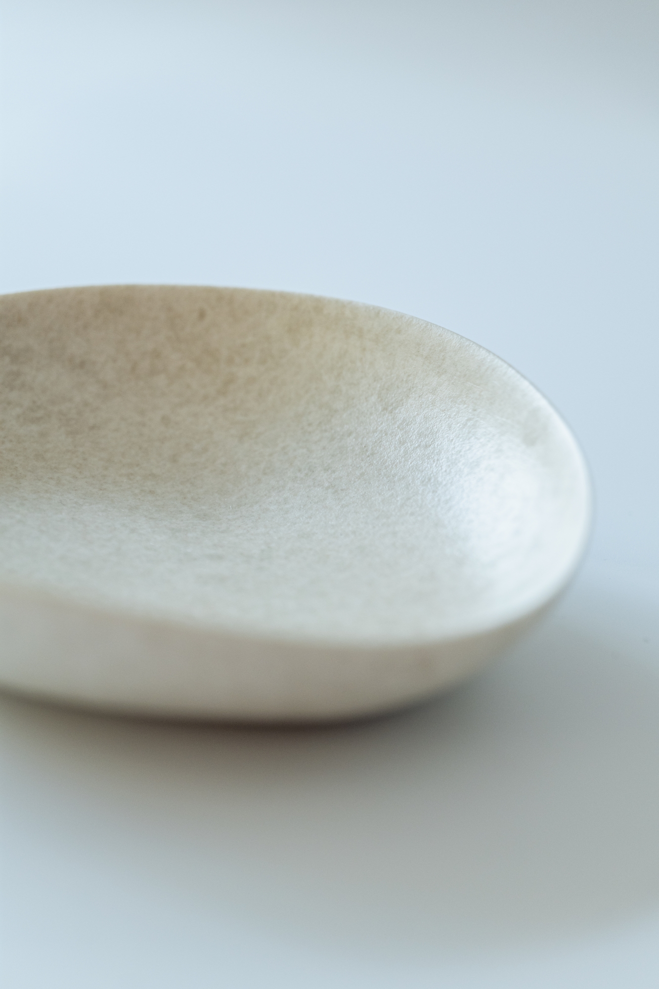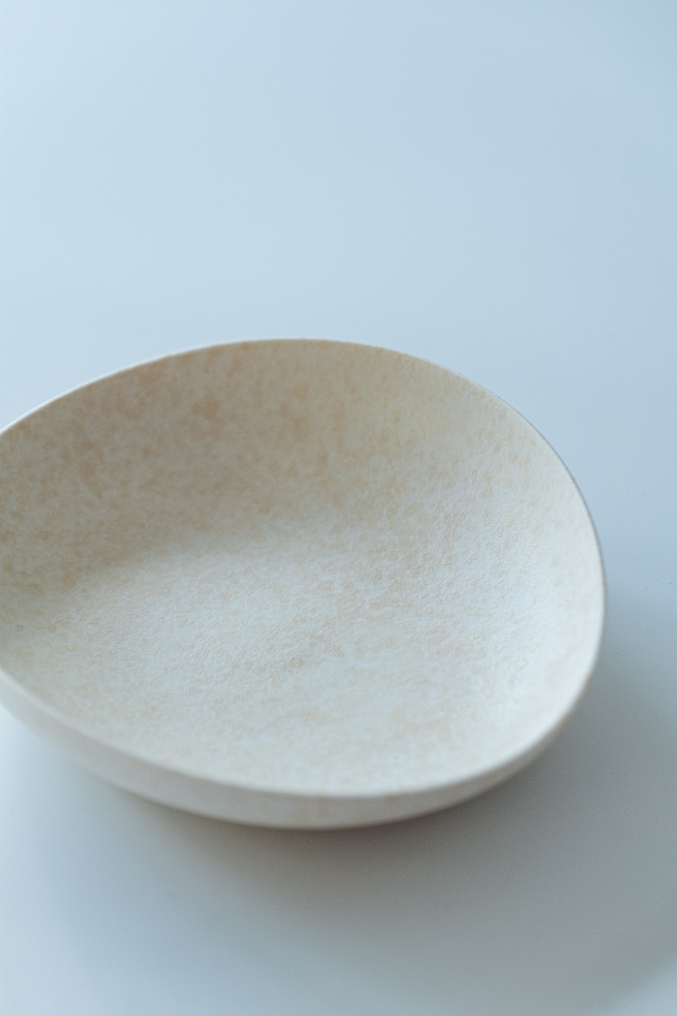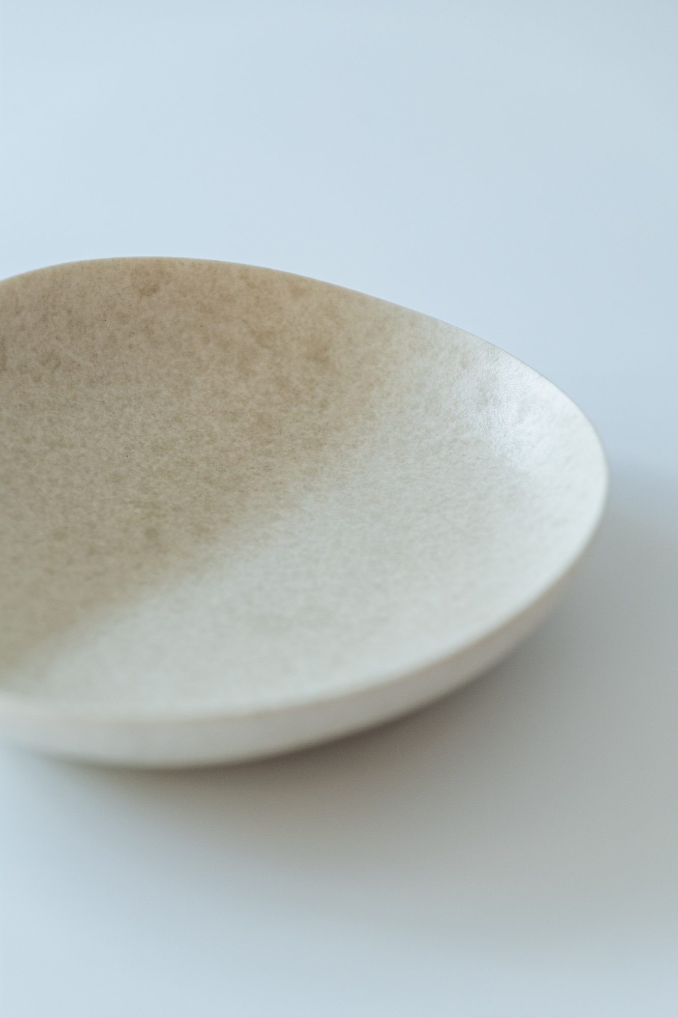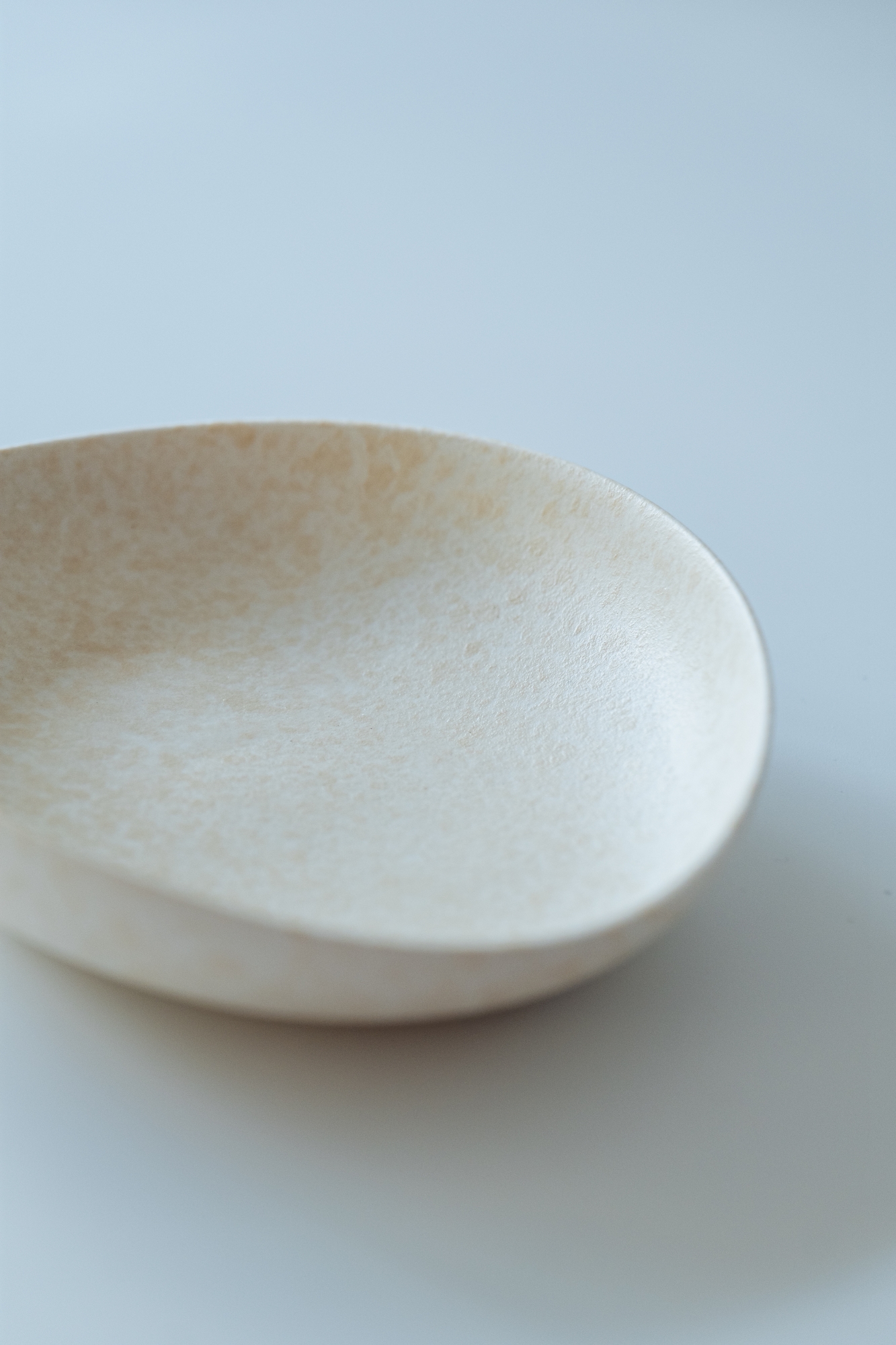 백자 혹은 실크백자를 사용해 물레로 기본 형태를 잡은 뒤, 손으로 다시 형태를 변형하고 굽을 다듬어 그릇 특유의 유연한 실루엣을 표현한 작업입니다.