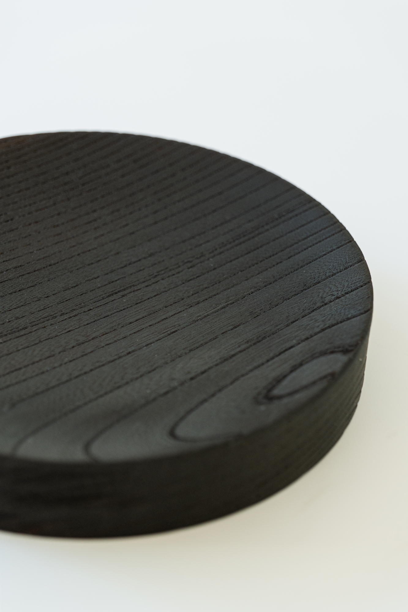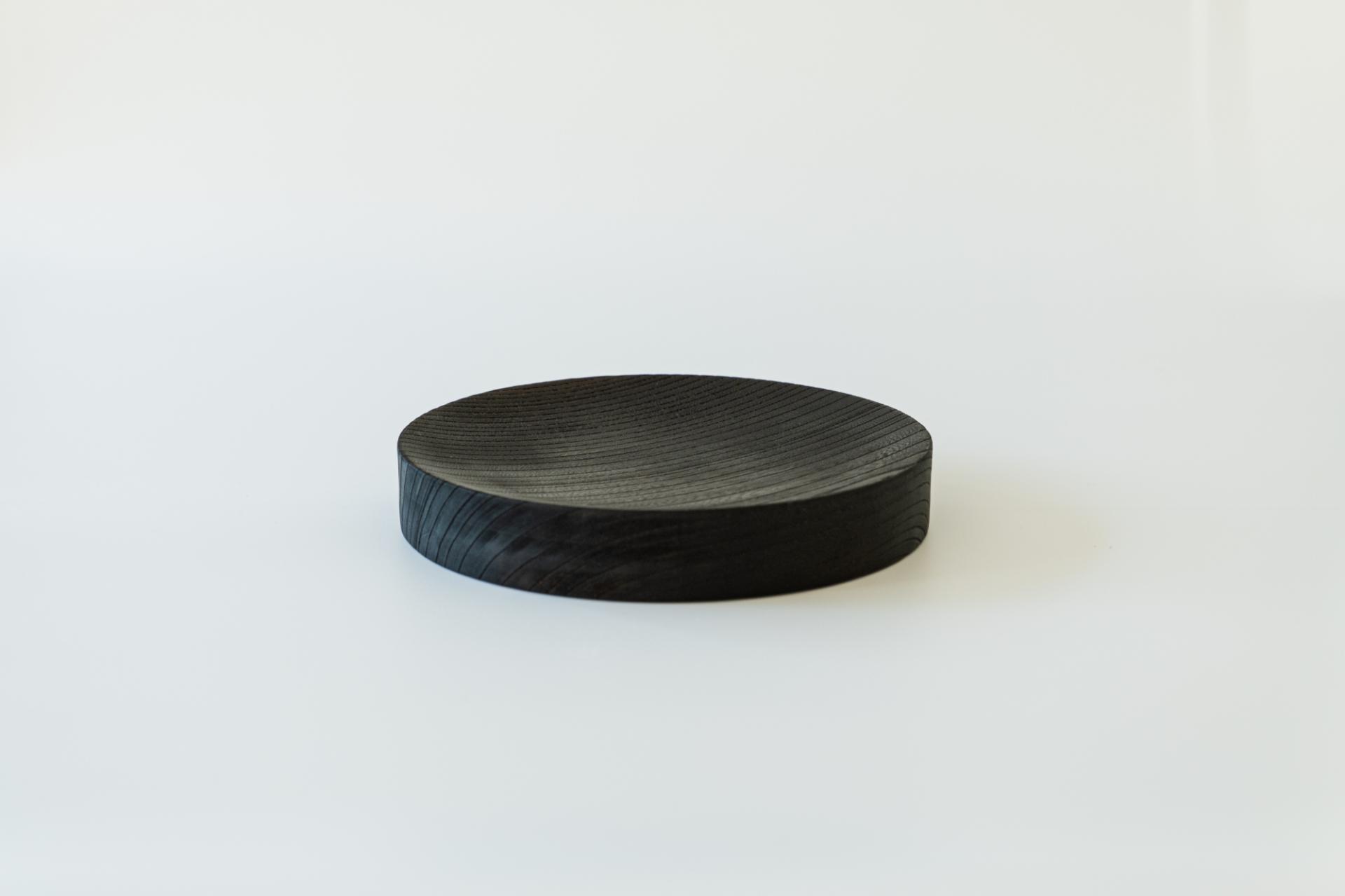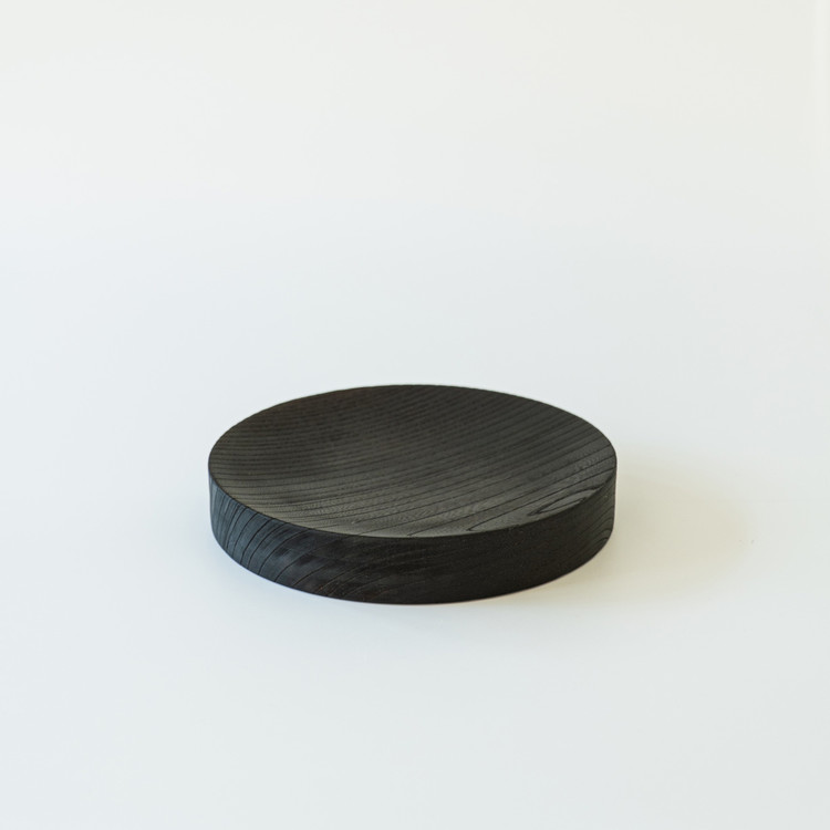 두께 40mm의 탄화목으로 만든 단단한 트레이입니다. 표면에는 아주 미세한 경사를 주어, 과일이나 작은 물건들이 자연스럽게 중앙으로 모이도록 했습니다.