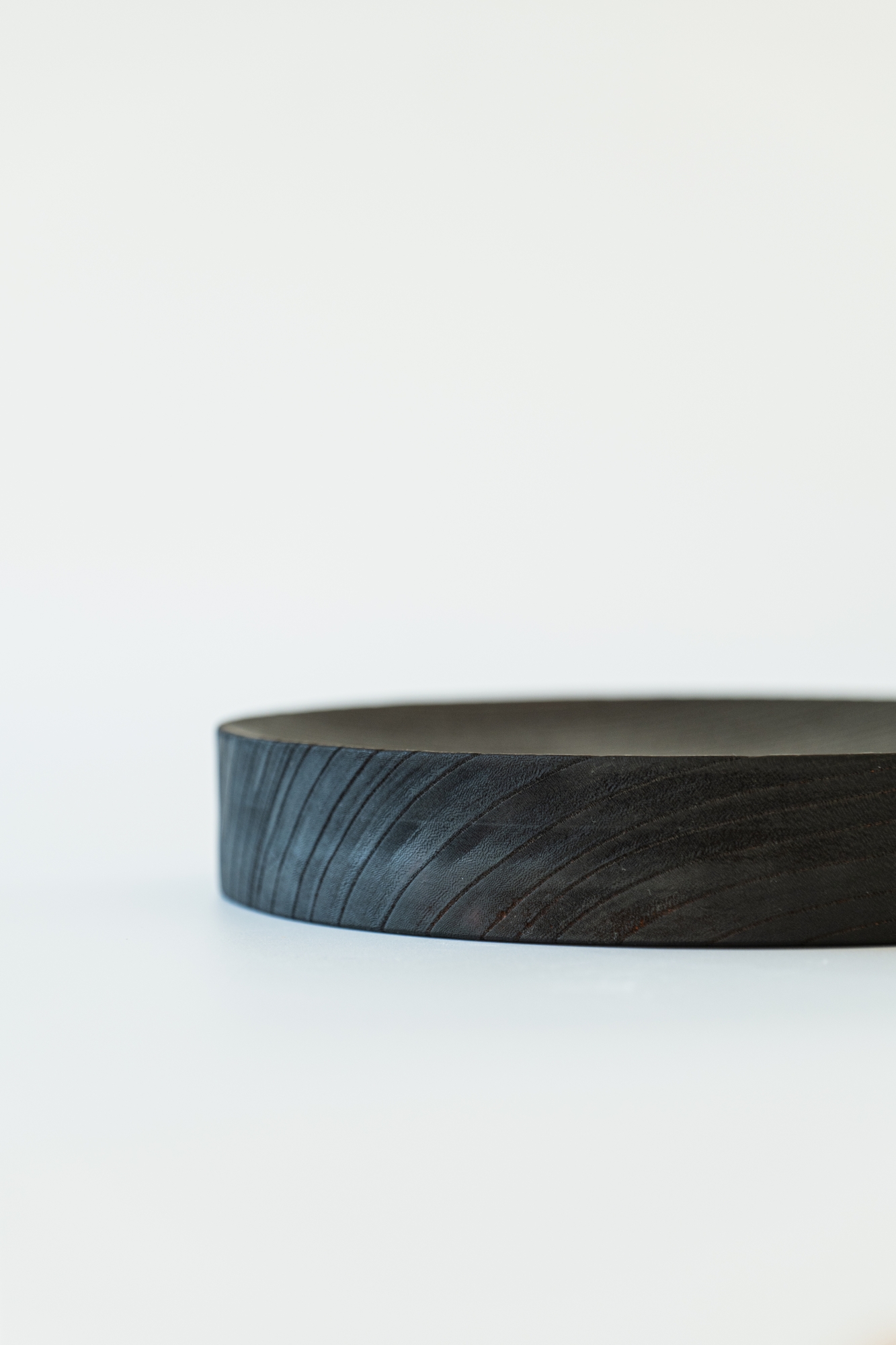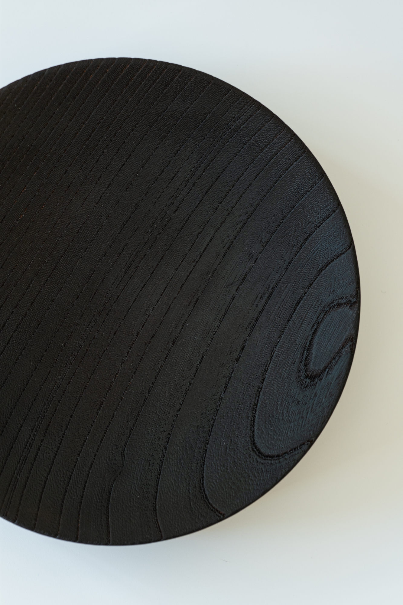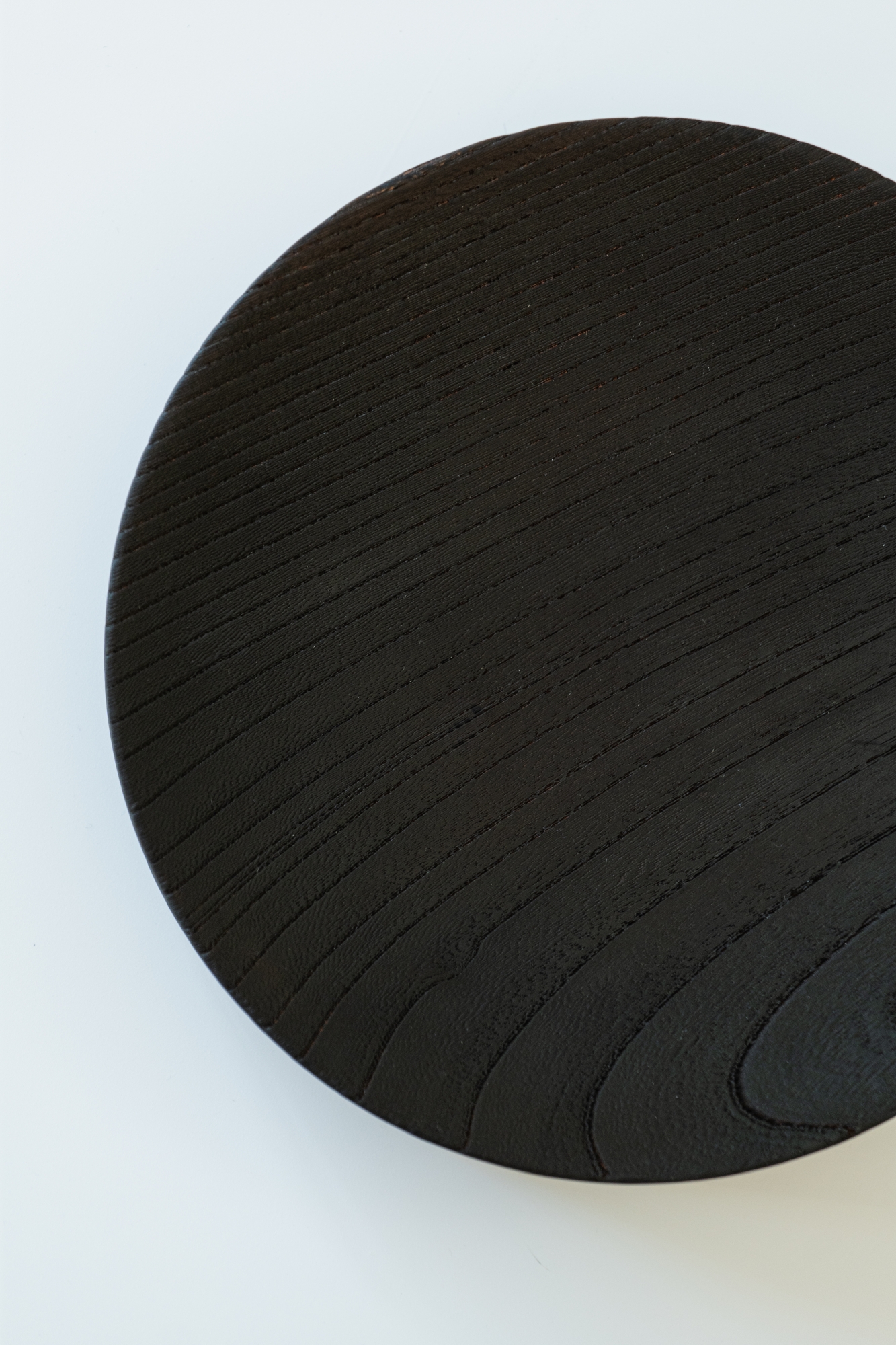 두께 40mm의 탄화목으로 만든 단단한 트레이입니다. 표면에는 아주 미세한 경사를 주어, 과일이나 작은 물건들이 자연스럽게 중앙으로 모이도록 했습니다.