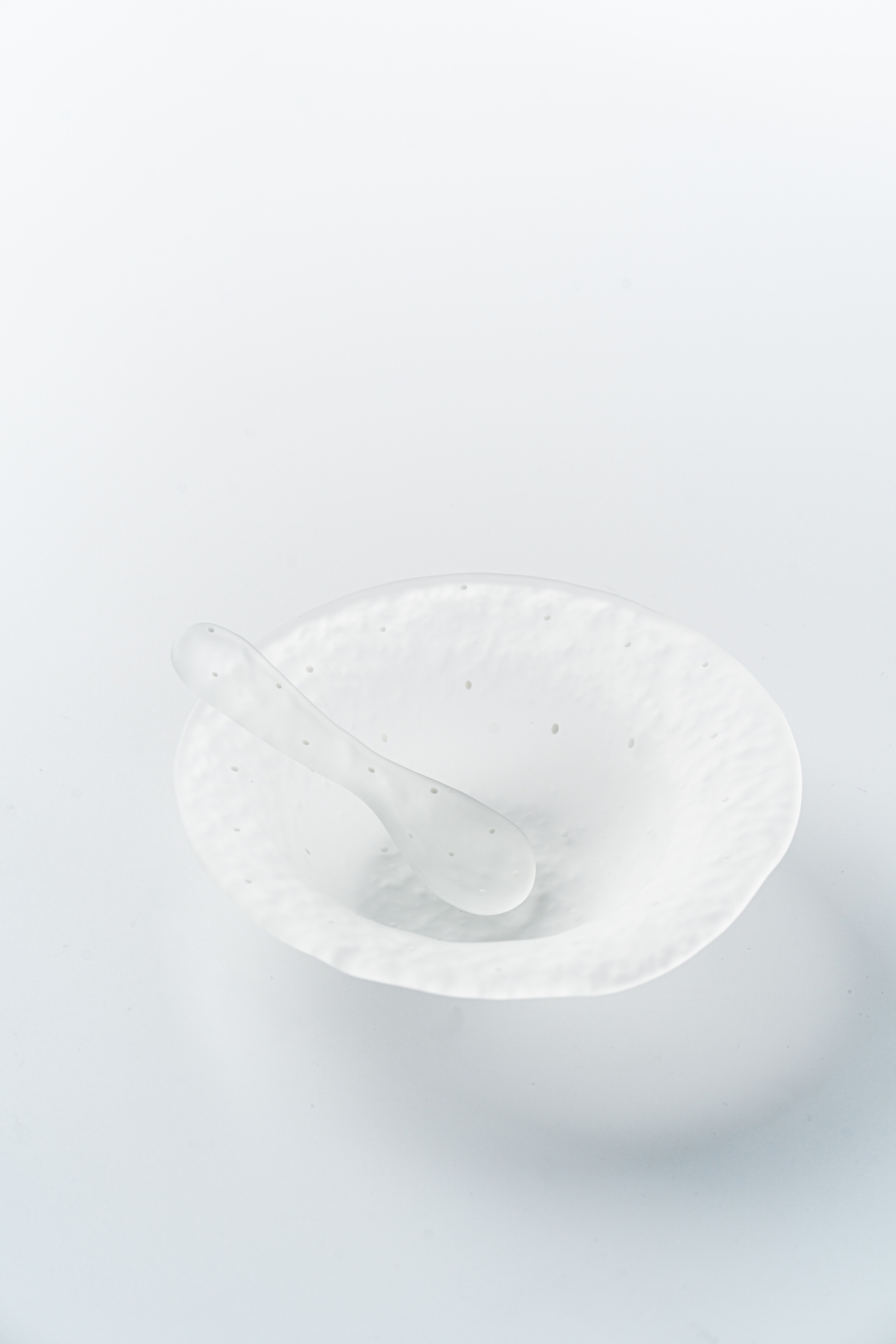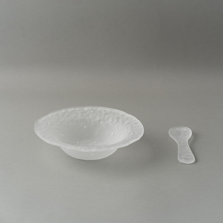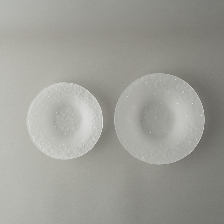 어린 시절 가지고 놀던 종이죽의 질감을 유리에 담았습니다. 단단한 유리에 부드러운 표면을 더하며, 작업 내내 놀이하는 듯한 즐거움을 느끼곤 합니다.