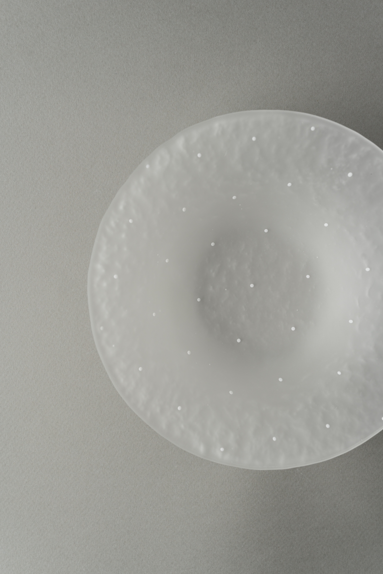- 종이죽의 질감을 유리에 새기고 그 위에 유리로 도트 패턴을 수놓아 작업하였습니다.