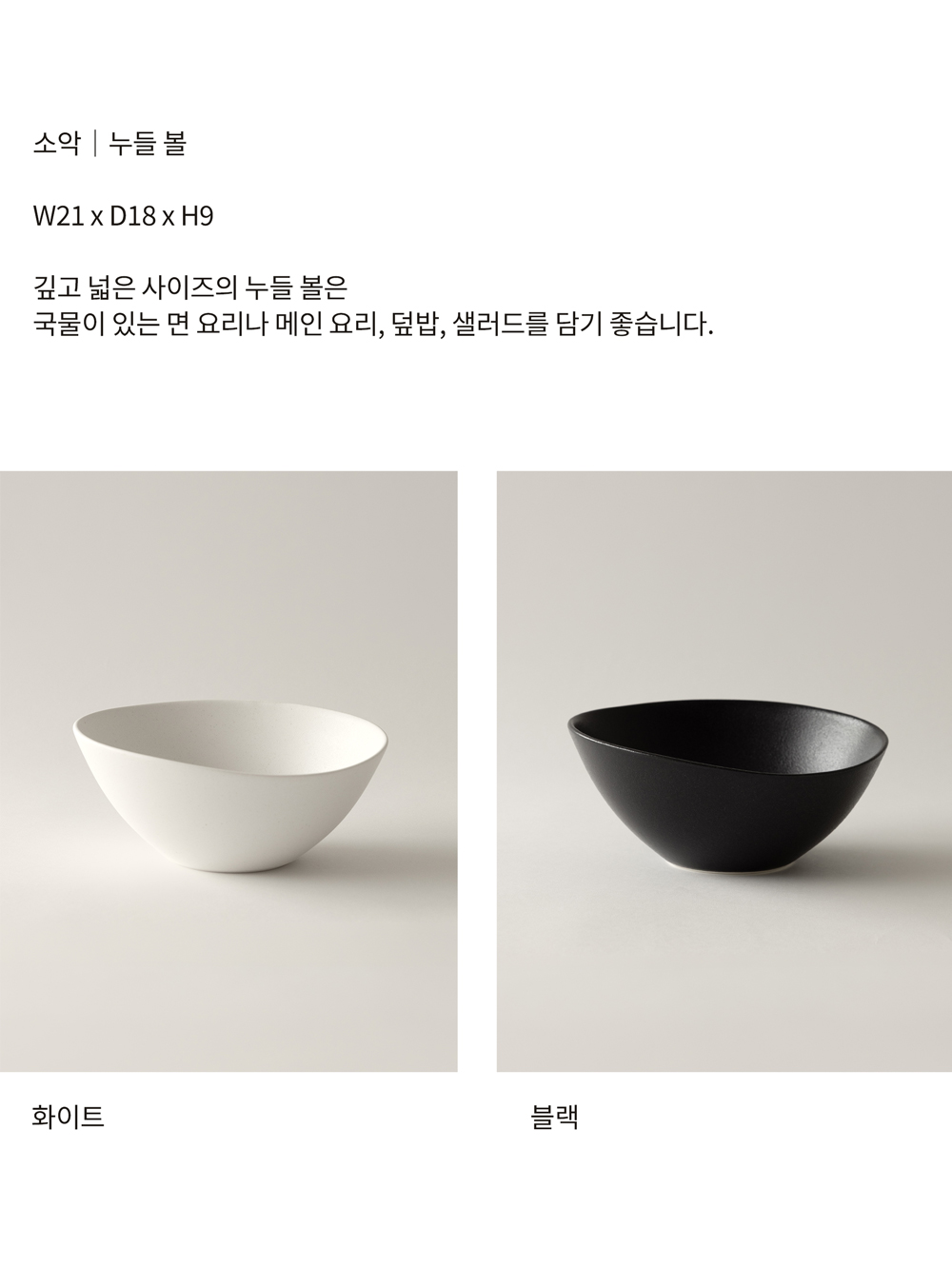 깊고 넓은 사이즈의 누들 볼은 국물이 있는 면 요리나 메인 요리, 덮밥, 샐러드를 담기 좋습니다.