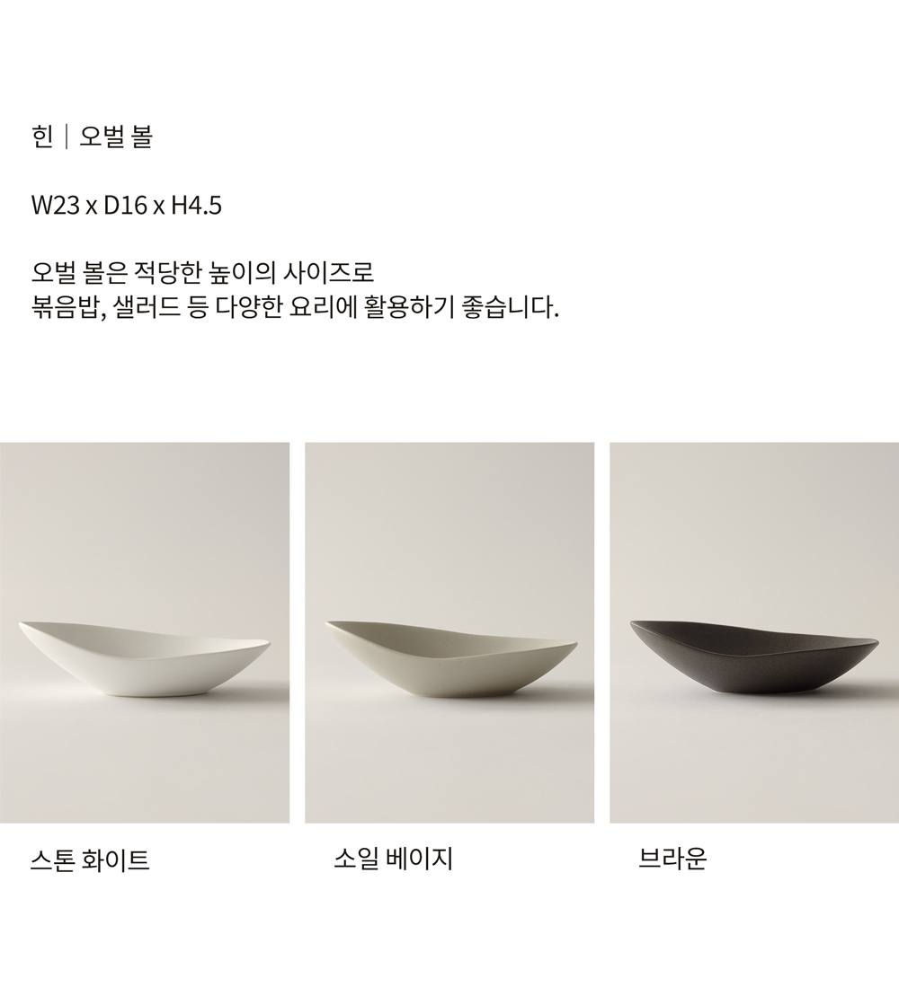 오벌 볼은 적당한 높이의 사이즈로 볶음밥, 샐러드 등 다양한 요리에 활용하기 좋습니다.