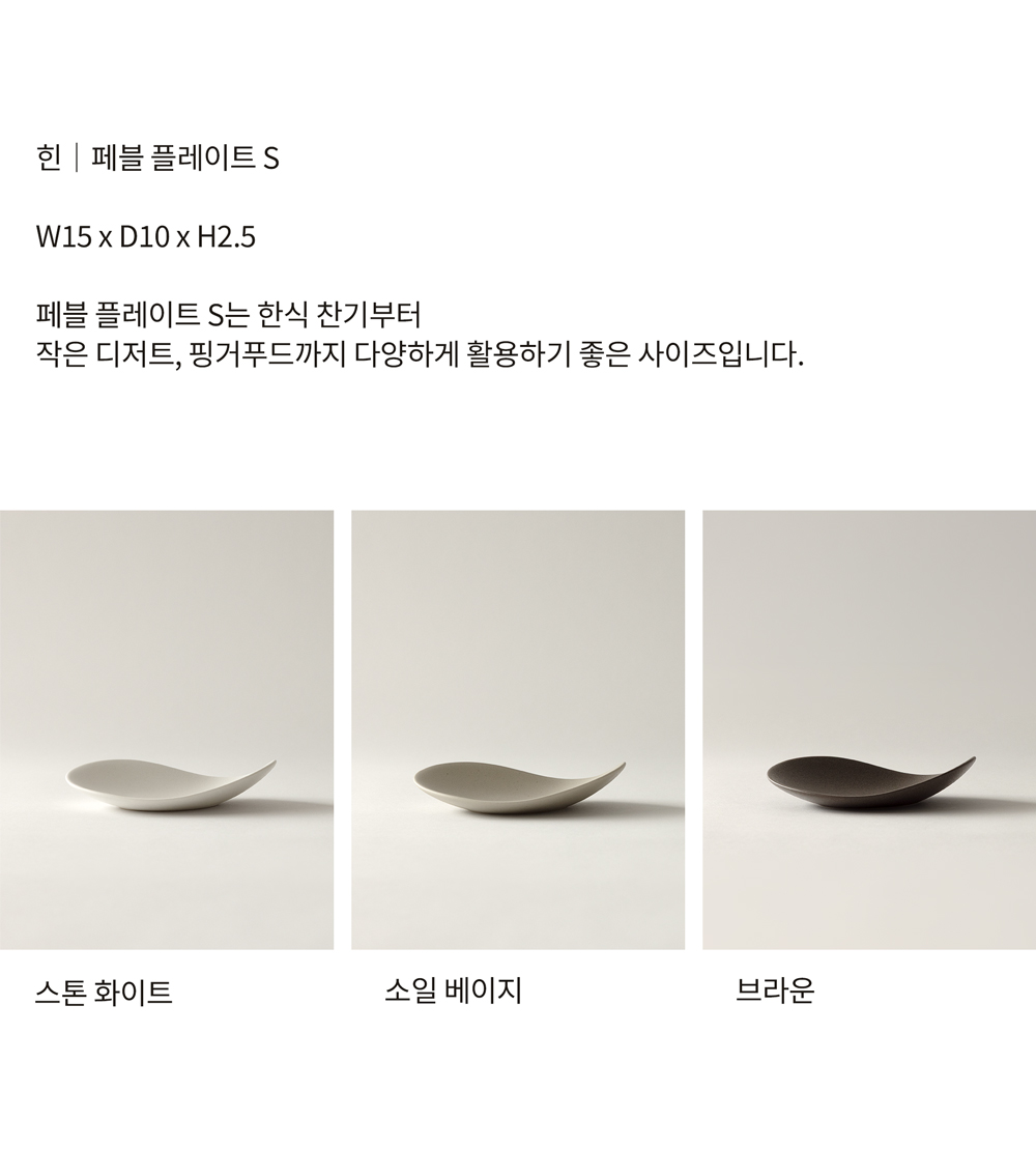 페블 플레이트 S는 한식 찬기부터 작은 디저트, 핑거푸드까지 다양하게 활용하기 좋은 사이즈입니다.