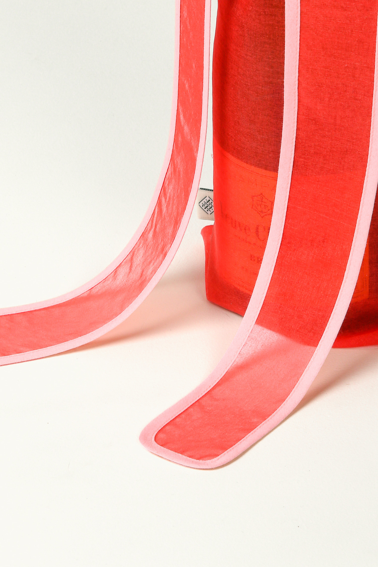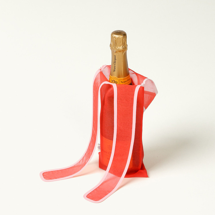 와인 1병 또는 비슷한 크기의 물건을 담을 수 있는 노방 소재의 가방 입니다. 정련하지 않은 생사로 짠 노방의 빳빳한 촉감, 은은하게 비치는 미감을 그대로 살려 완성했어요. 한쪽 손잡이를 직접 손으로 매듭지어서 사용합니다.