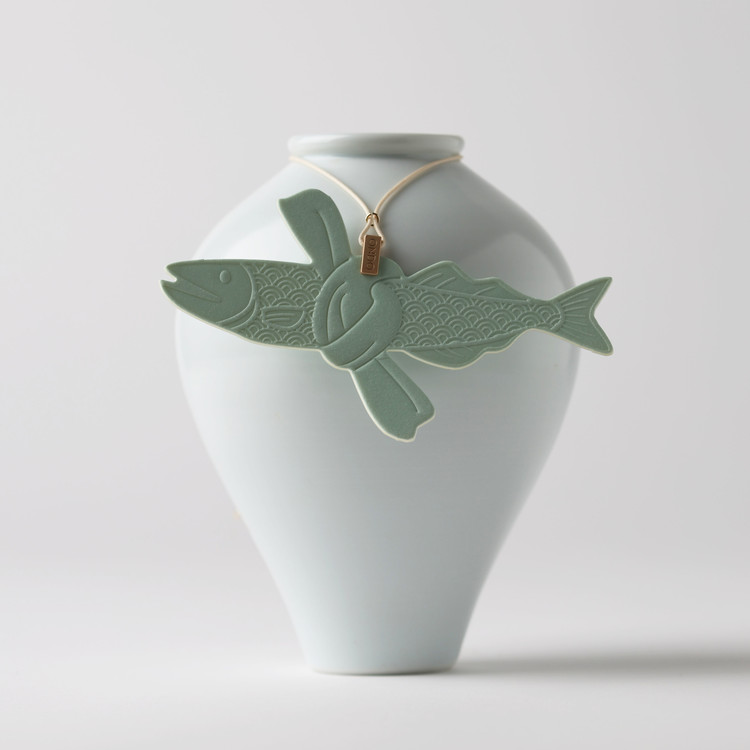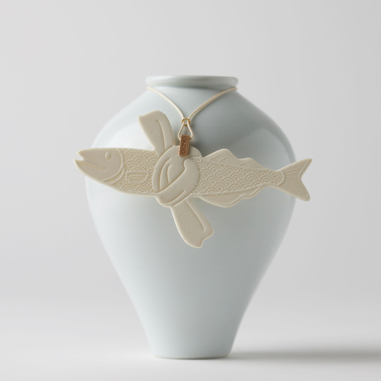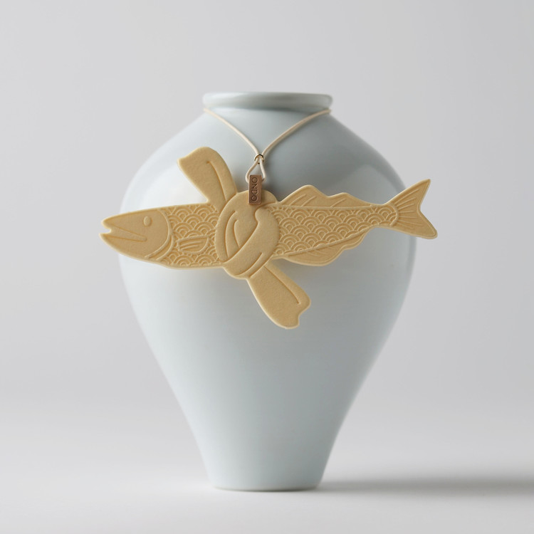 한국의 액막이 명태에서 모티브를 얻어, 행운의 상징을 품은 비늘 패턴으로 풀어냅니다.