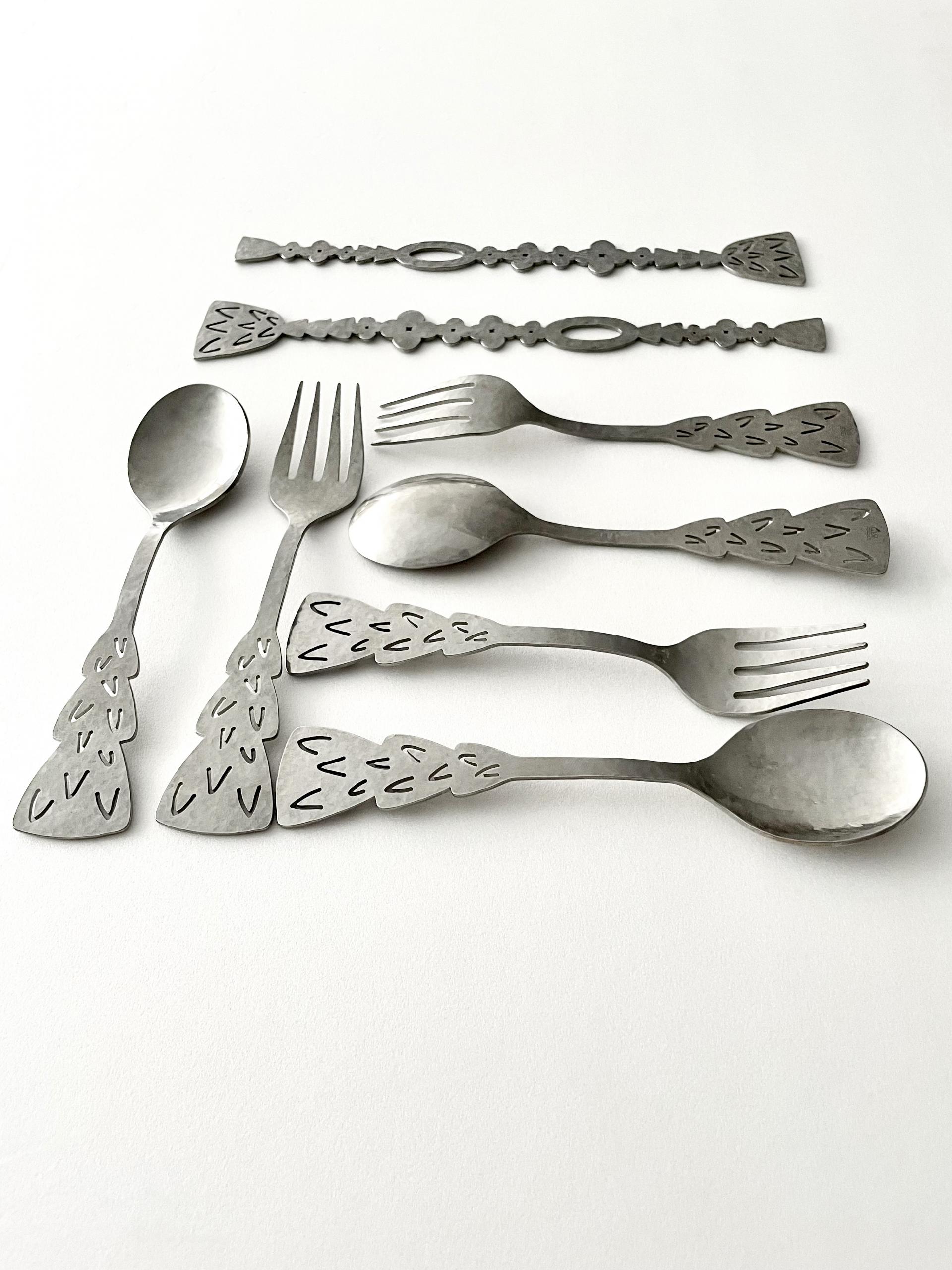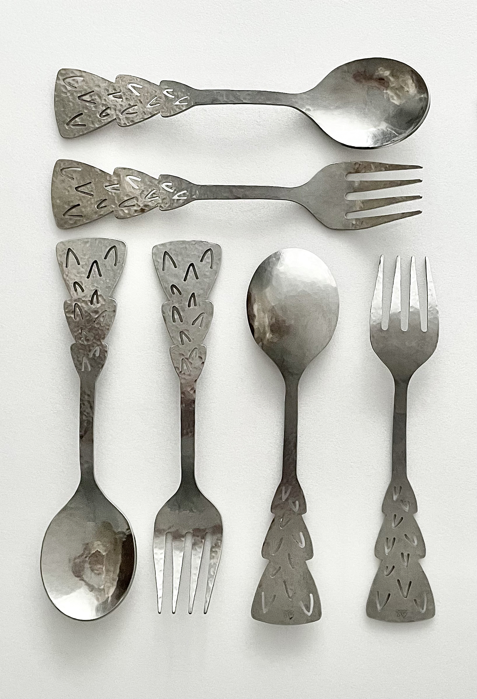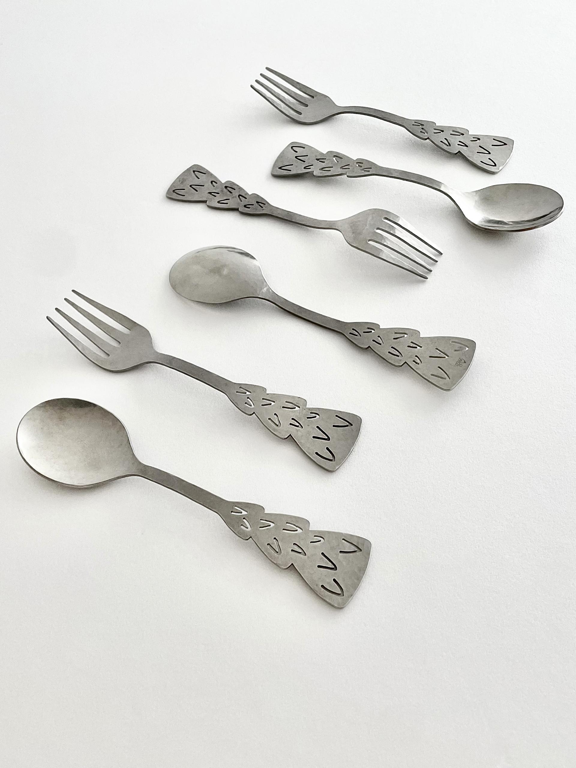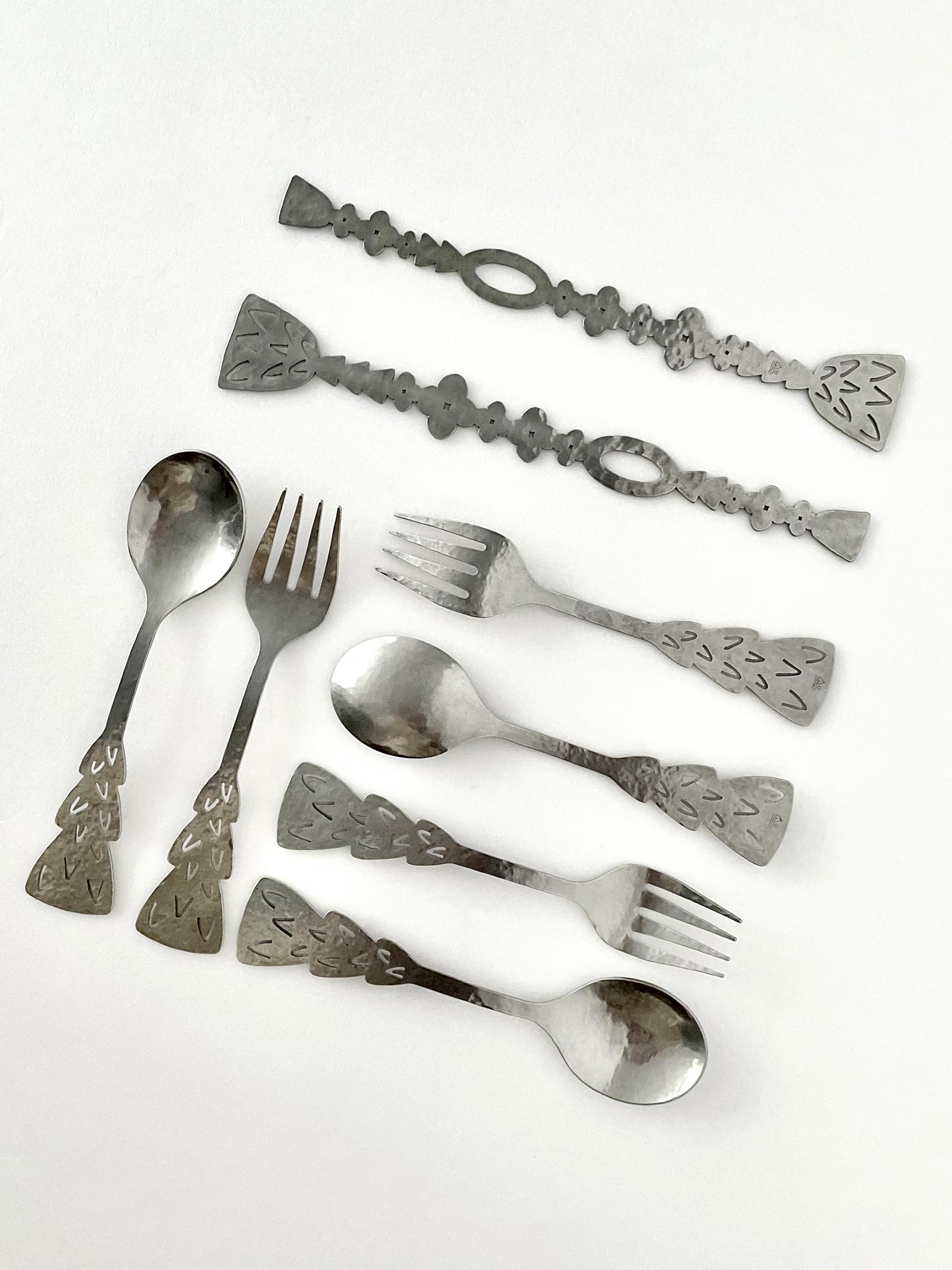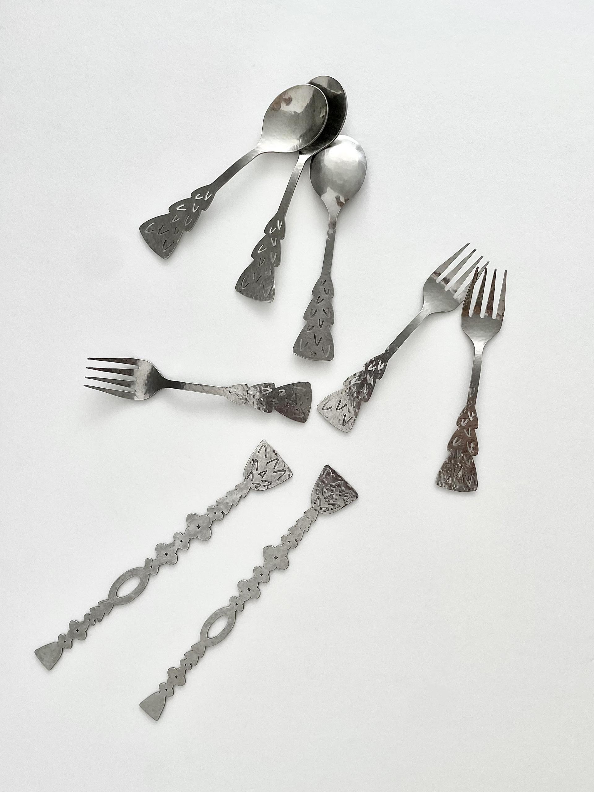 아이에게 봄은 어서 지나가길 바라는 계절로 바뀌었습니다. 꽃이 피면 수술 하신 할머니께서 돌아 오시니 어서 피었으면 좋겠다고 노래 부르던 아이에게 꽃은 꽃가루를 내뿜어 배신했고, 아이의 온 몸을 날카롭게 베어냈습니다. 엄마들은 아이 대신 차라리 자신이 아프길 바라는 것 처럼, 손잡이에 아이의 고통을 대신 할 수 있도록 뾰족한 가시모양이 패턴을 이루고있습니다. 봄이 완연한 5월, 꽃가루 알레르기로 괴로워하는 아이의 모습을 보고 꽃가루를 형상화 한 날카로운 손잡이를 가진 커트러리로, 전면 망치 텍스쳐가 새겨져 있습니다. 소재는 스테인리스 스틸 304로 만들어져 더욱 견고하고 안전하며 요거트, 아이스크림, 케이크 등의 디저트용으로 사용하시길 추천드립니다.