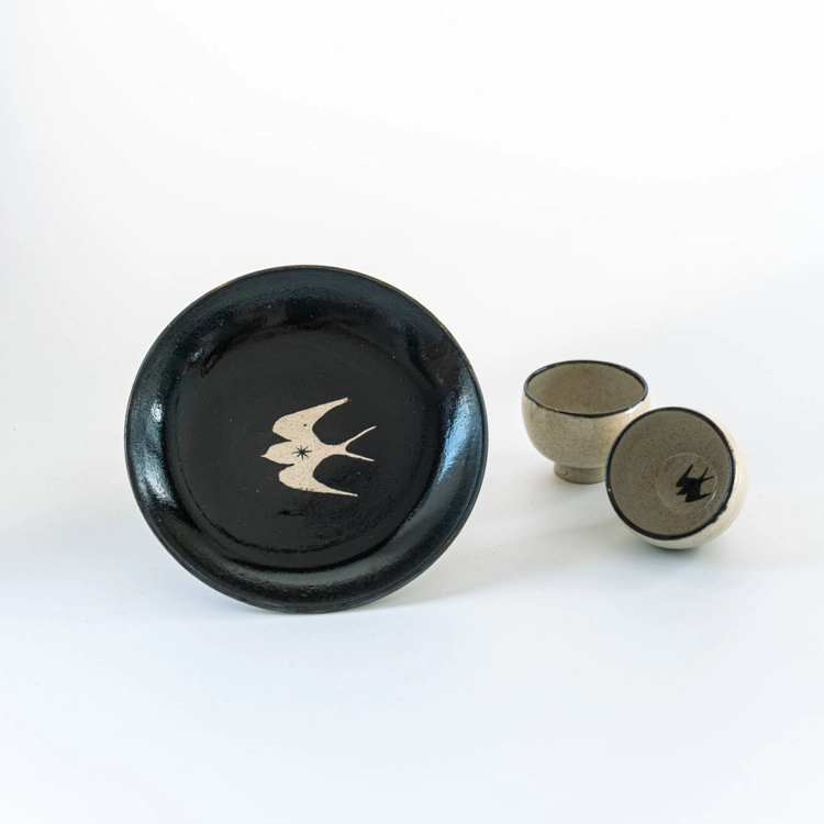 가운데 한 마리의 제비가 포인트인 술잔입니다. 약주나 청주와 같은 맑은 술과 함께 즐겨보세요.