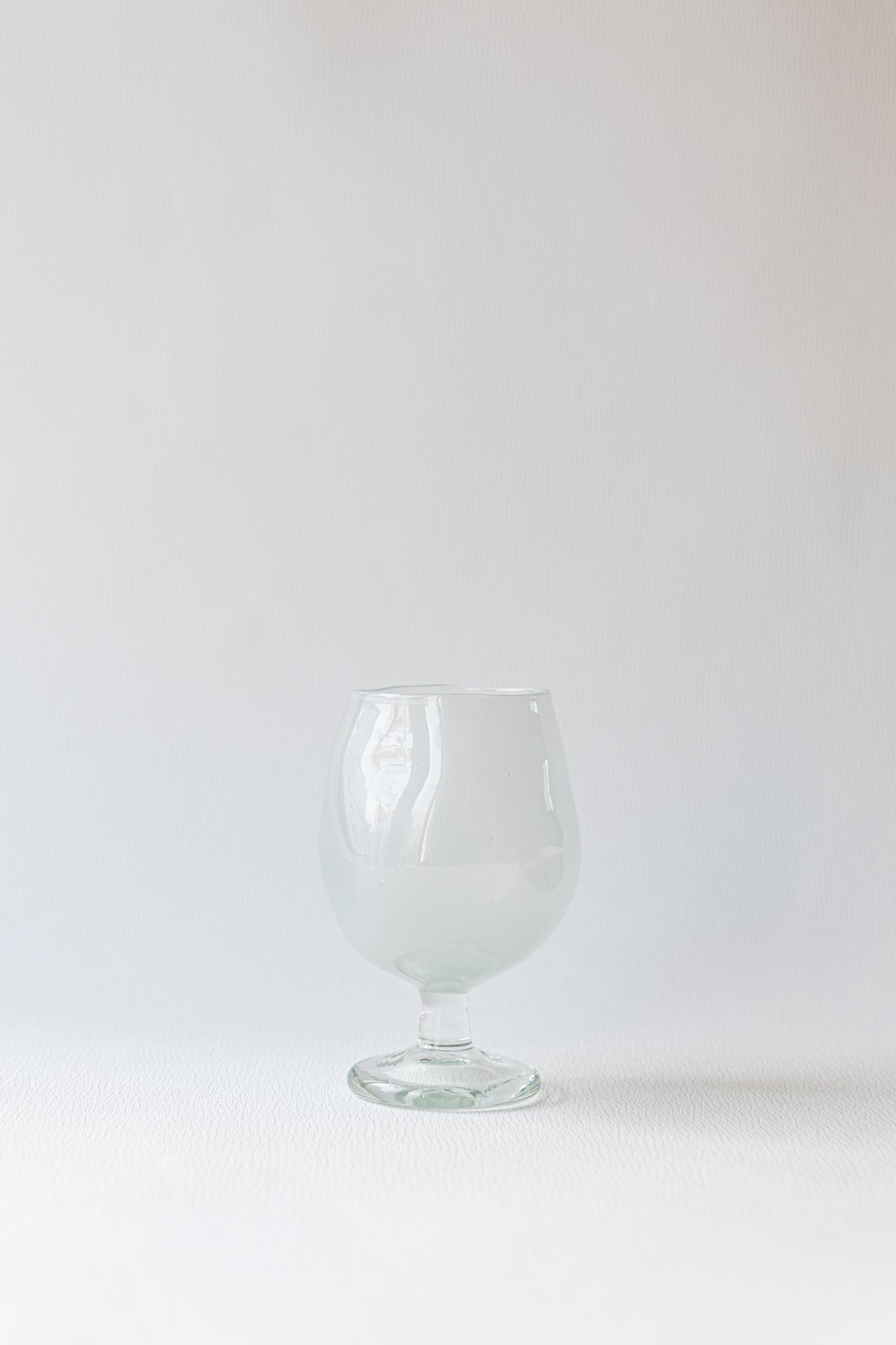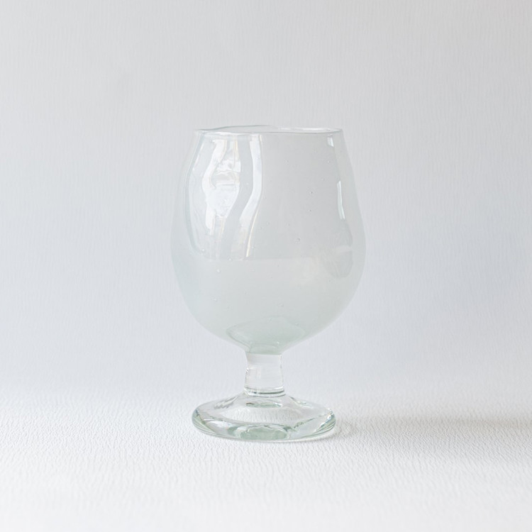 옥색의 단아한 컬러와 비정형 디자인의 해당 컵은 유리 블로잉 기법으로 제작되었습니다.