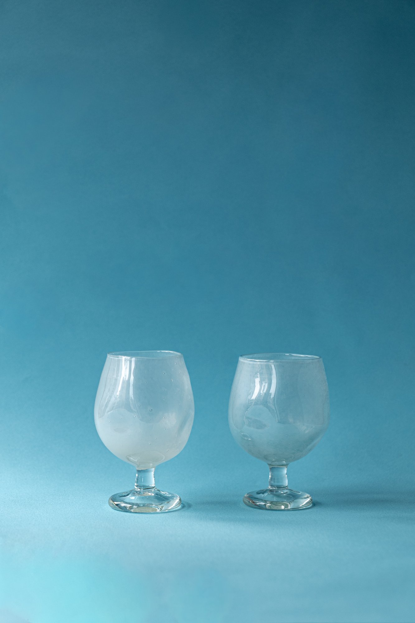 ⊙ 핸드 블로잉 기법은 섭씨 1200도의 초고온에서 용해된 유리를 파이프에 말아 입으로 불어내는 기법입니다. 하나하나 작가님의 손에서 탄생하기에 모양이나 크기, 높이의 차이가 있을 수 있으며 미세한 기포가 있을 수 있습니다.