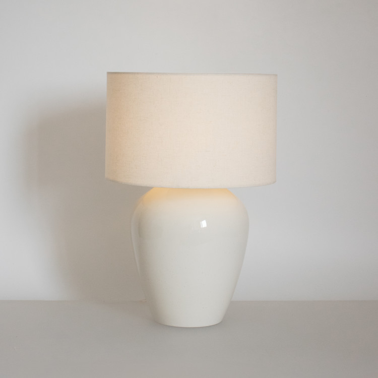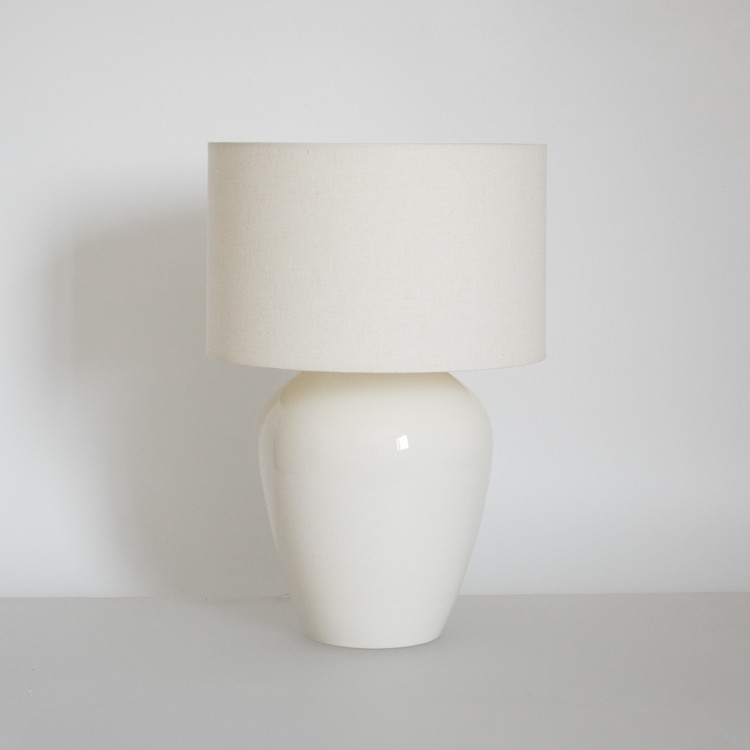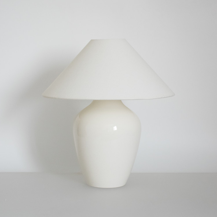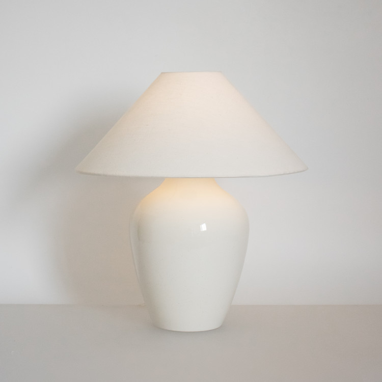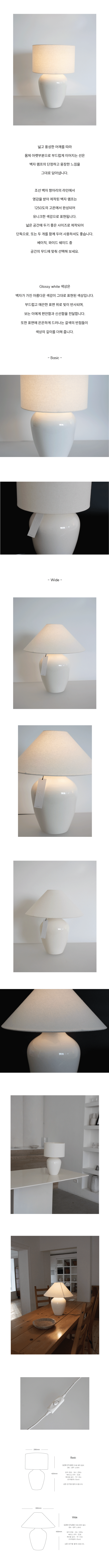 넓고 풍성한 어깨를 따라 몸체 아랫부분으로 부드럽게 이어지는 선은 백자 램프의 단정하고 웅장한 느낌을 그대로 담아냅니다.