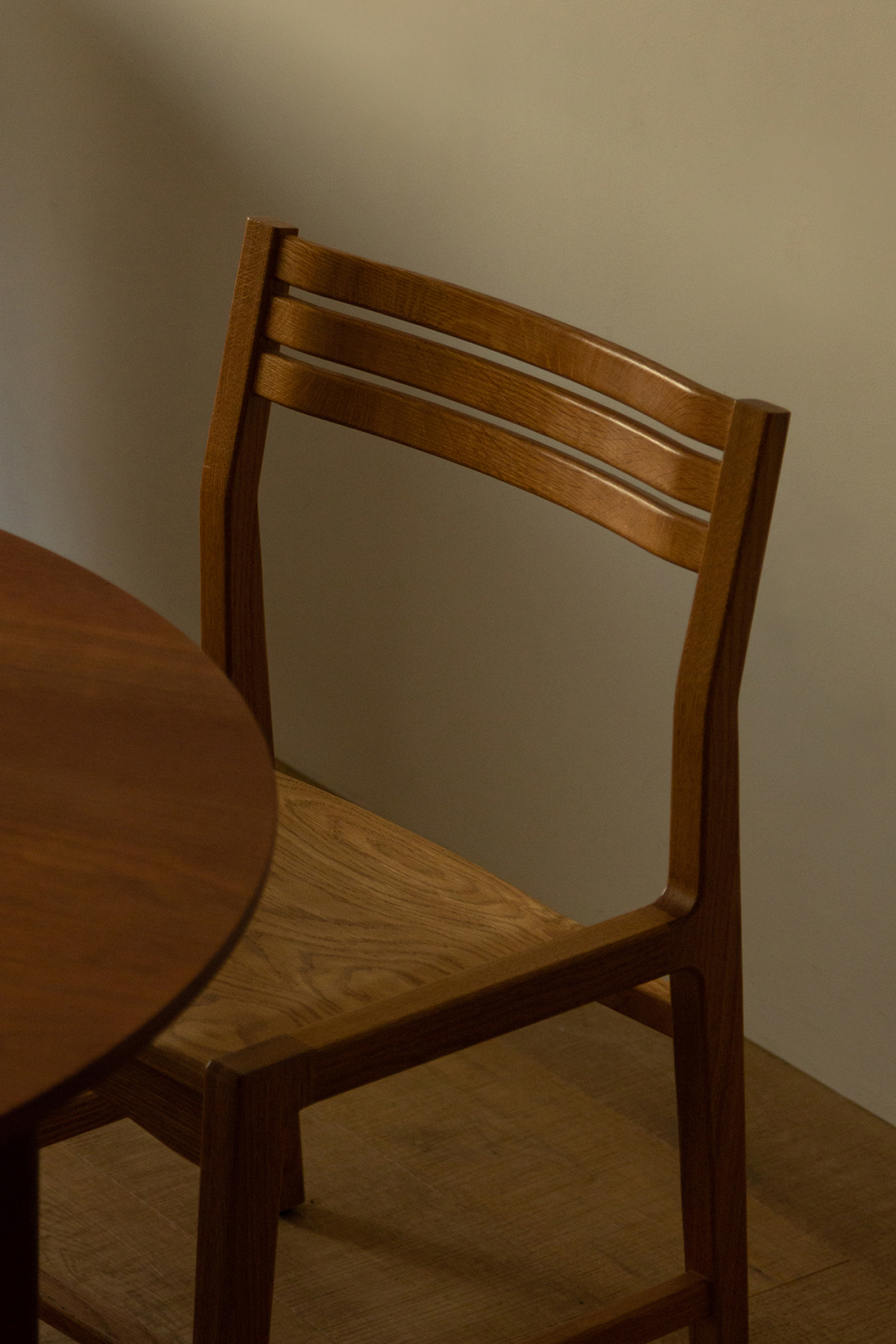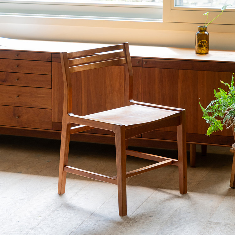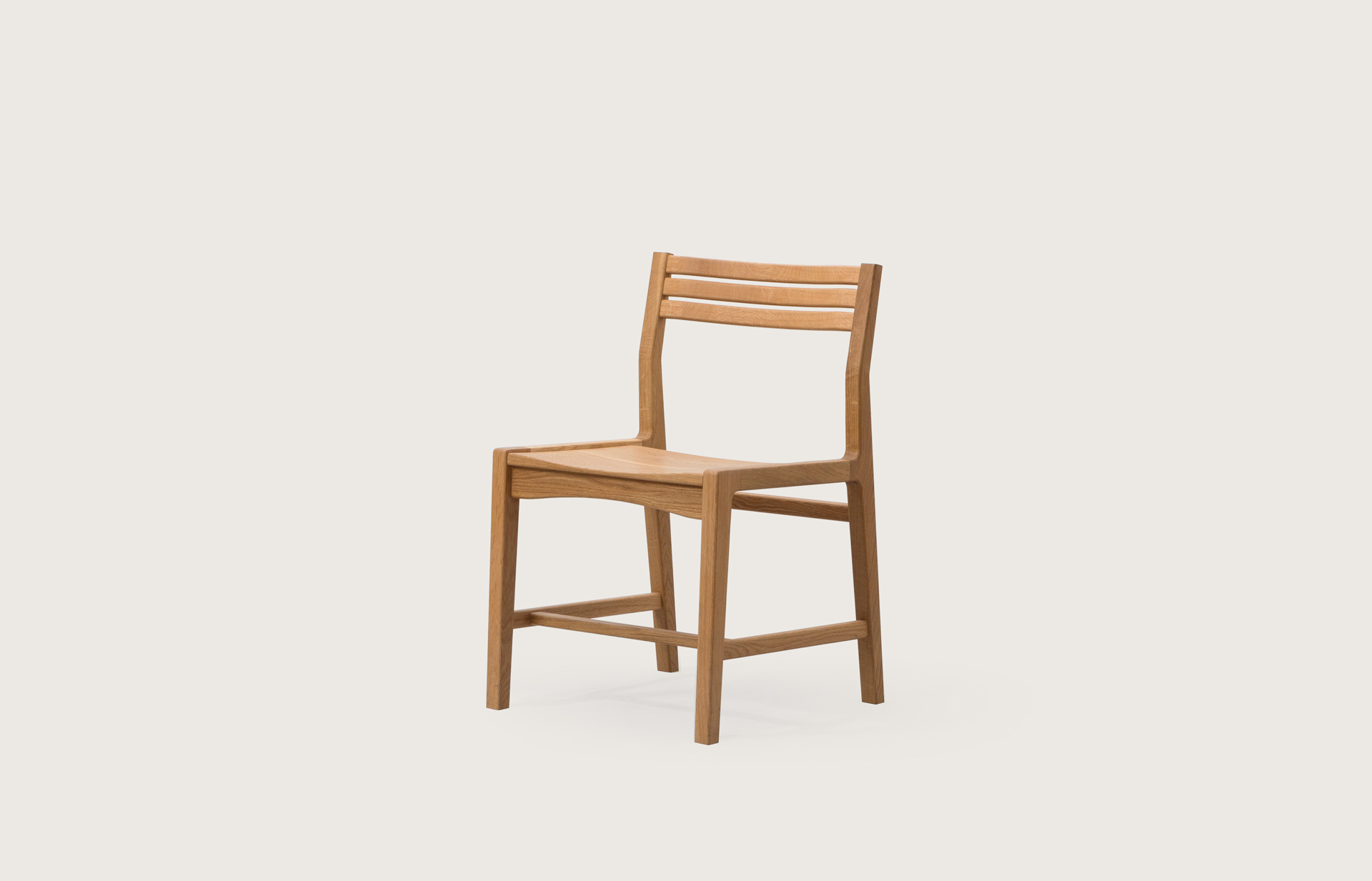 부드럽게 굽은 세 줄의 선이 자리한 등판, 너른 너비의 좌판은 편안한 착석감을 제공합니다. 어느 공간에나 잘 녹아들 수 있도록 담백한 인상을 담아내고자 했습니다.