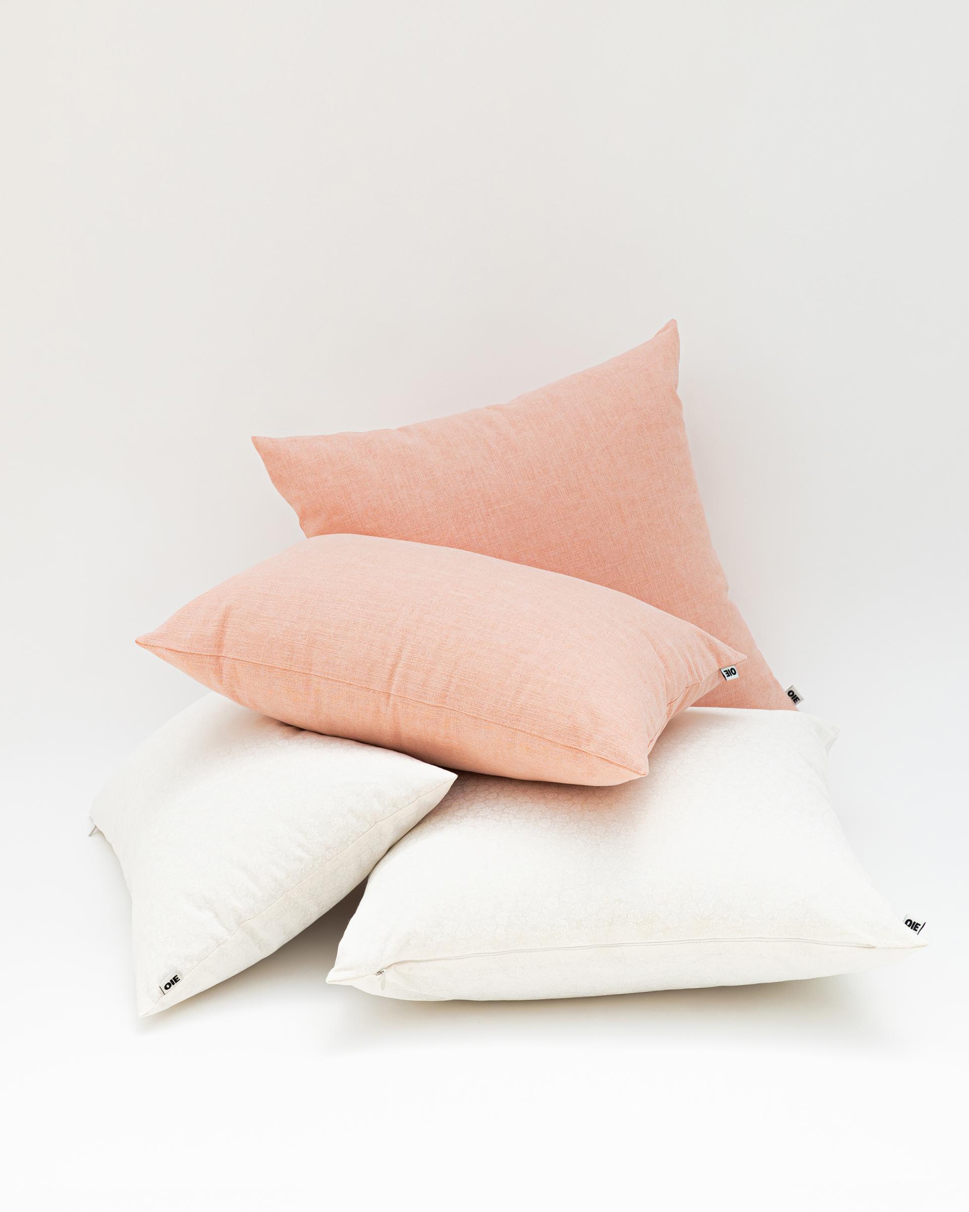 ‘E-um Cushion: 이음 쿠션’의 Pink Gypsophila는 연한 핑크와 화이트 컬러의 실로 자연스럽게 직조되어 단조롭지 않으면서 밝고 귀여운 분위기의 커버입니다.