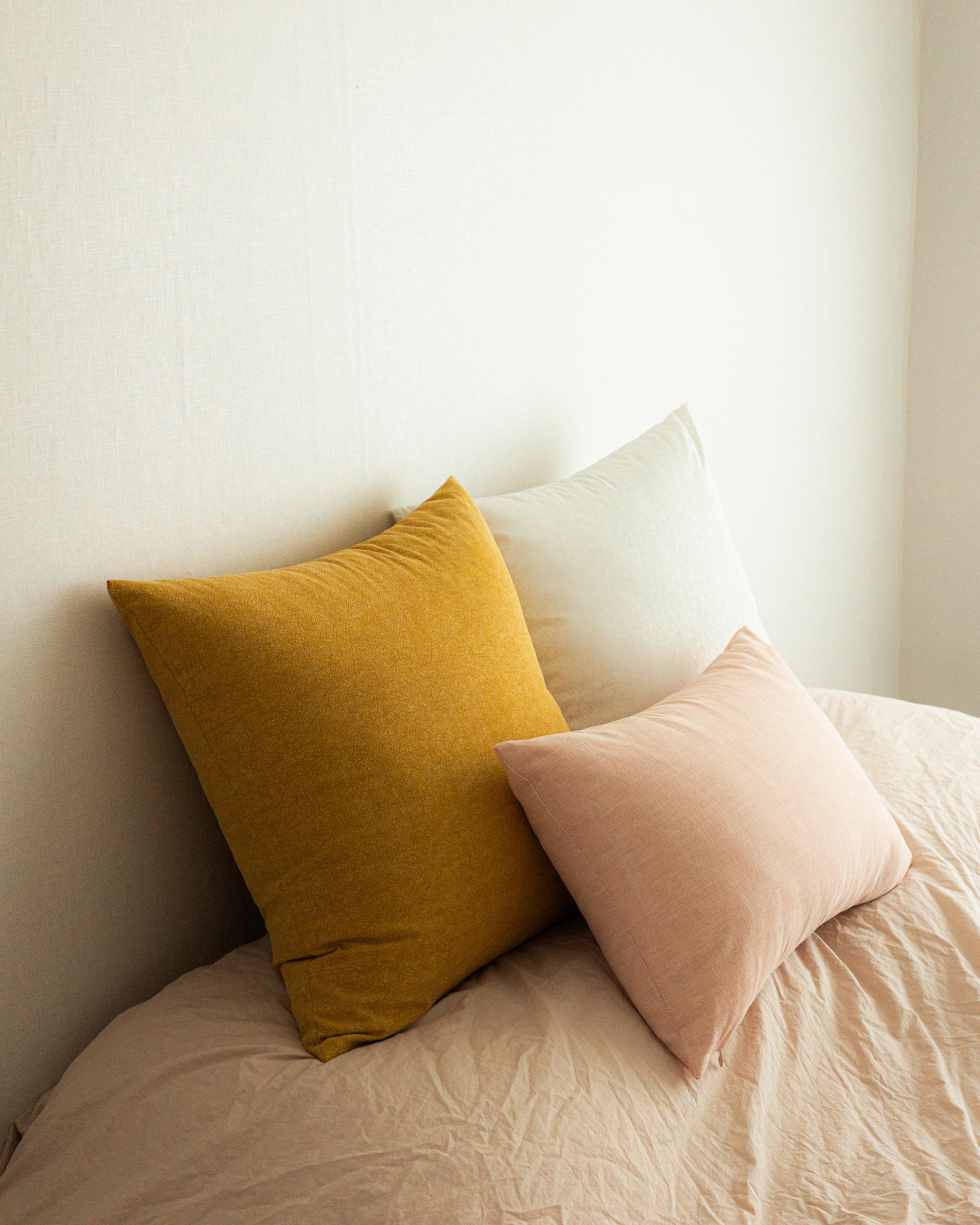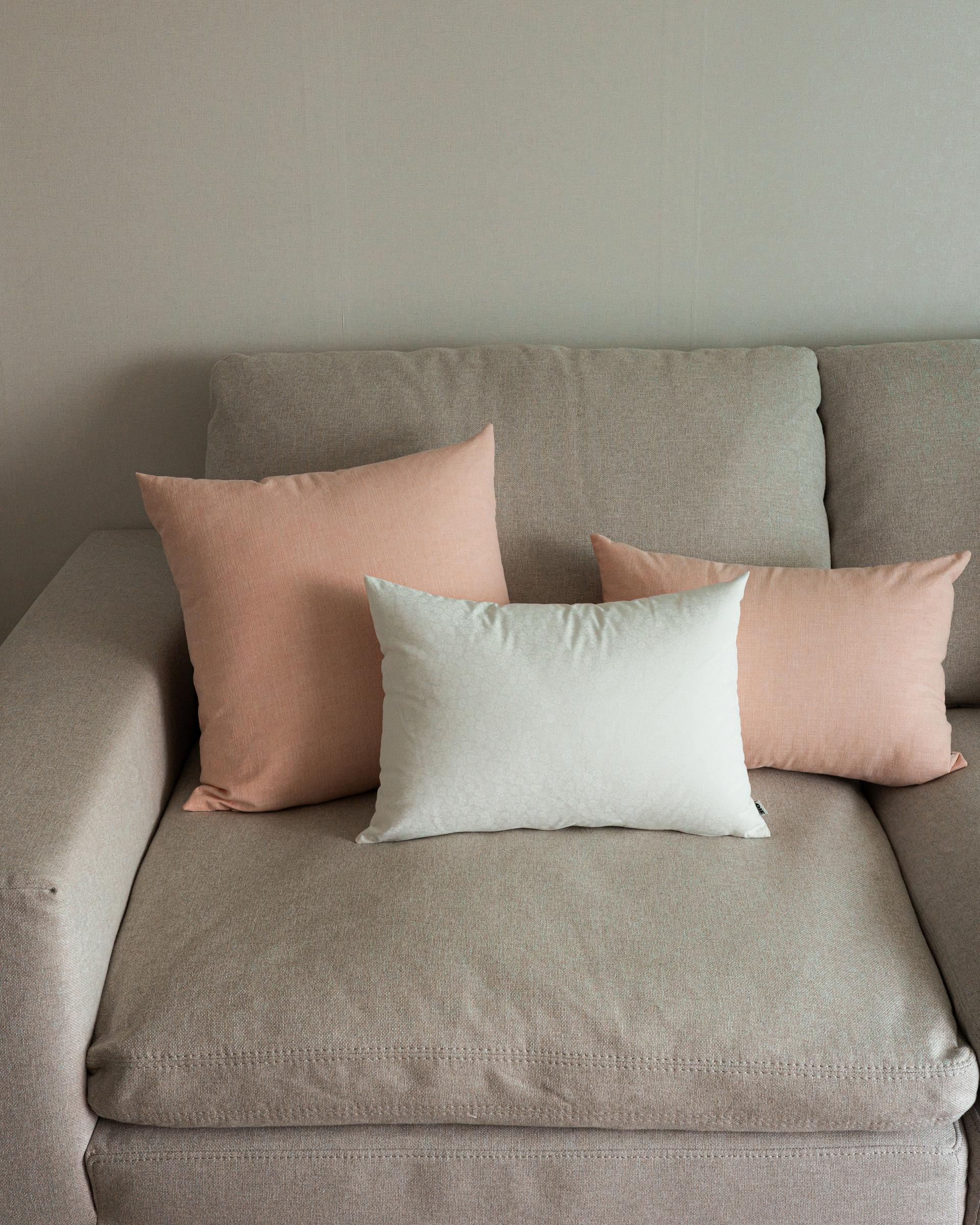100% 면 20수 원단으로 제작되어 소재 특유의 부드러운 텍스처와 차분한 컬러감이 자연스럽게 어우러지며, 잔잔한 구김마저도 하나의 멋으로 표현되는 매력적인 커버입니다. 도톰한 조직감과 부드러운 촉감은 소파 또는 침실에 포인트 아이템으로 활용하기 좋으며, 하단은 콘솔 지퍼 방식으로 깔끔하게 마감되어 커버 분리와 세탁이 용이해 일상적인 관리가 편리합니다.